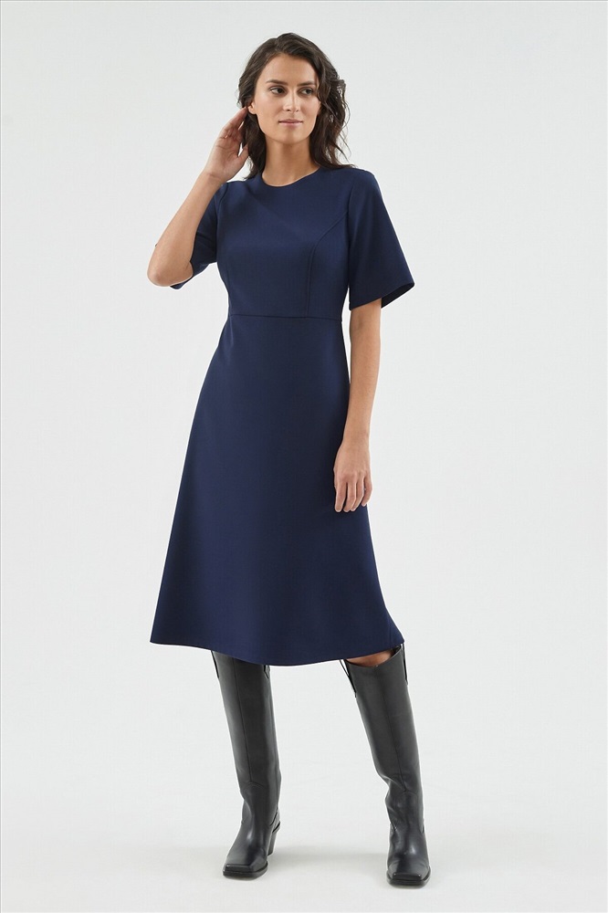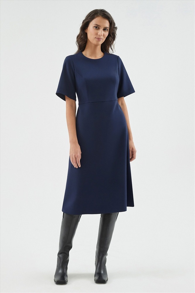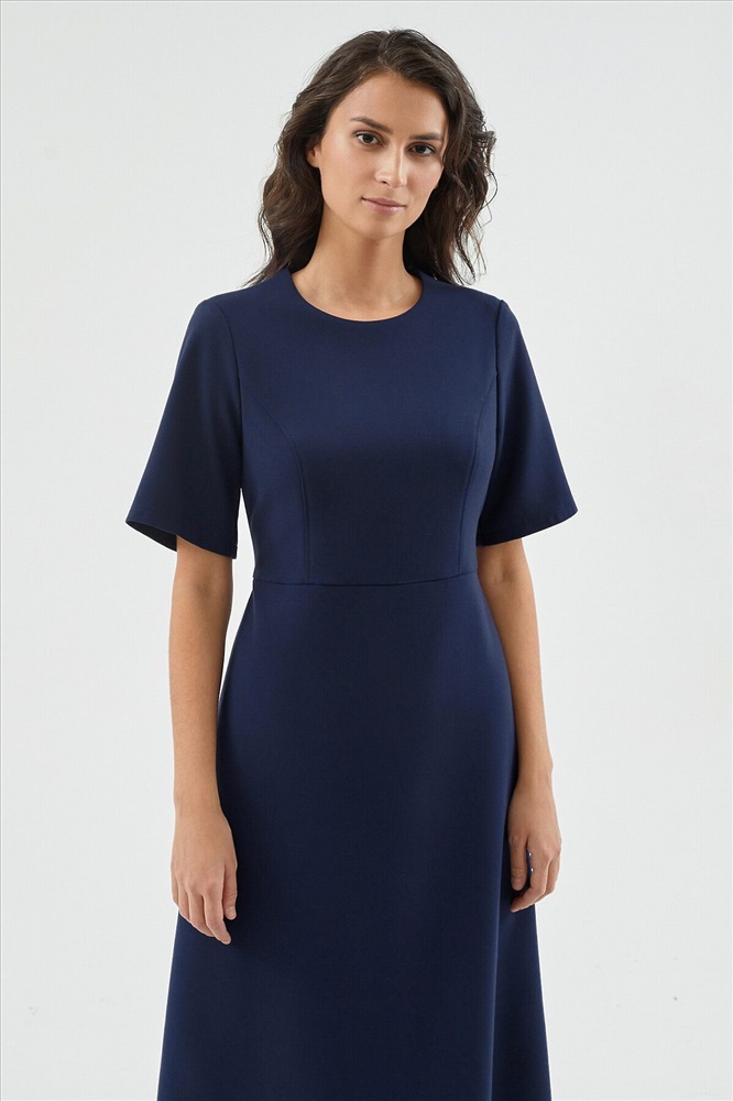 ID товара: 970235 Состав: Полиэстер 63%, Вискоза 32%, Эластан 5%; подкладка- Полиэстер 100% Сезон: Весна/Лето Длина: Ниже колена Фасон: Приталенное Рукав: Короткие Вид застежки: Молния Вырез горловины: Круглый Основная ткань: Полиэстер Стиль: классический Страна бренда: Россия Страна производства: Россия Приталенное платье миди отрезное по талии с рельефами. Круглая горловина, короткий рукав 1/3. Платье классического силуэта с трапециевидной юбкой. Платье выполнено из костюмной ткани в базовом темно-синем цвете. Комментарии к товару