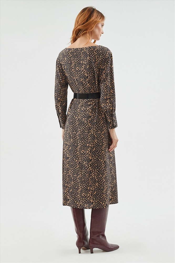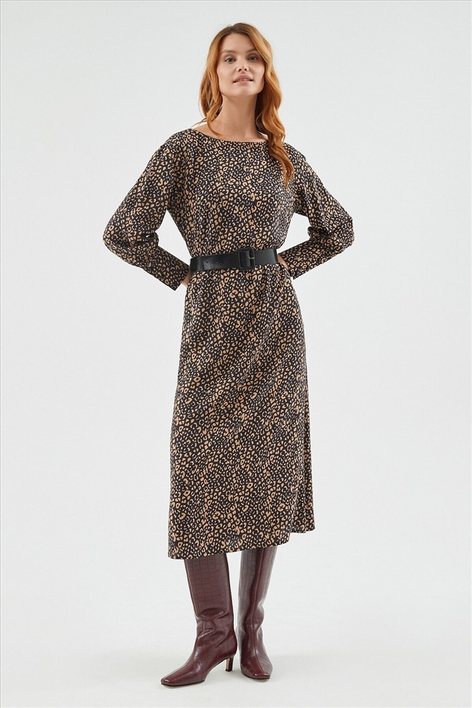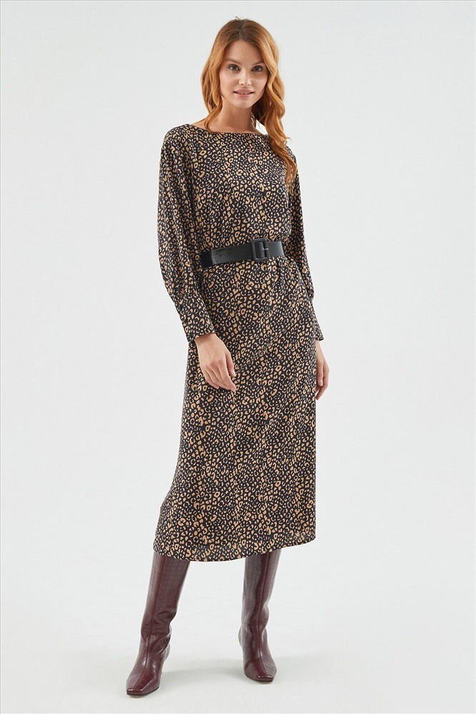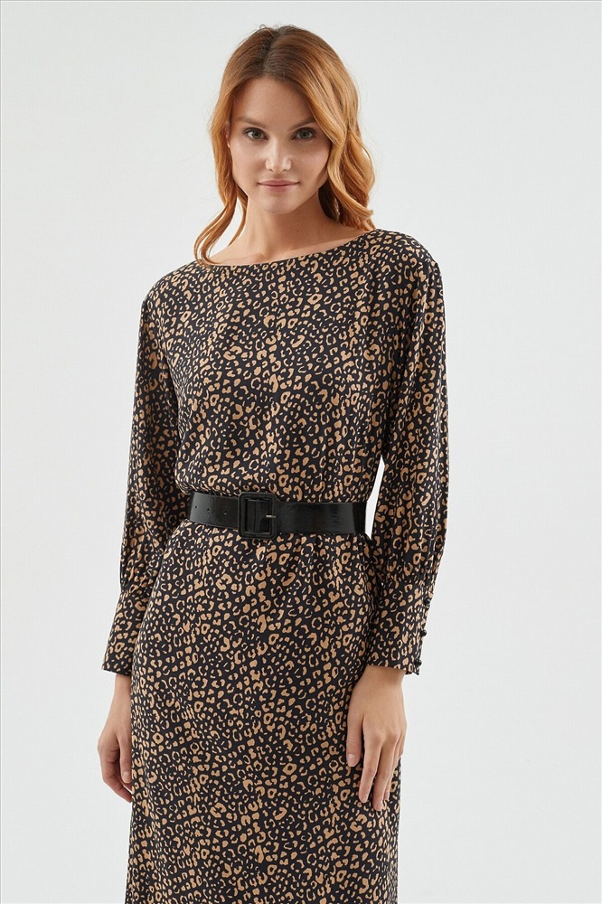 ID товара: 970389 Состав: Вискоза 100%; Подкладка- Полиэстер 100% Сезон: Демисезон Длина: Миди Фасон: Полуприлегающий Рукав: длинные Подкладка: Есть Вырез горловины: "лодочка" Рисунок: леопардовый Декоративные элементы: Пояс Основная ткань: Вискоза Стиль: Повседневный Страна бренда: Россия Страна производства: Россия Платье прилегающего силуэта из вискозной ткани с анималистичным принтом. Длина миди. Вырез горловины лодочка, рукав втачной со спущенным плечом с широкими манжетами. В комплект входит черный пояс из экокожи. Комментарии к товару