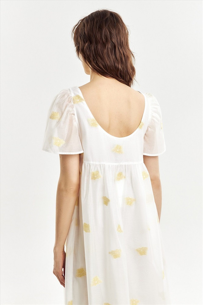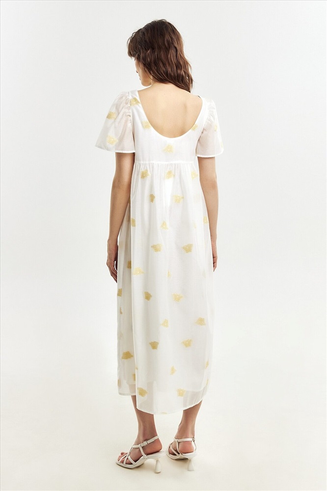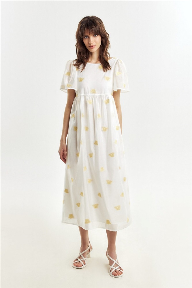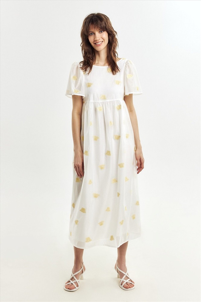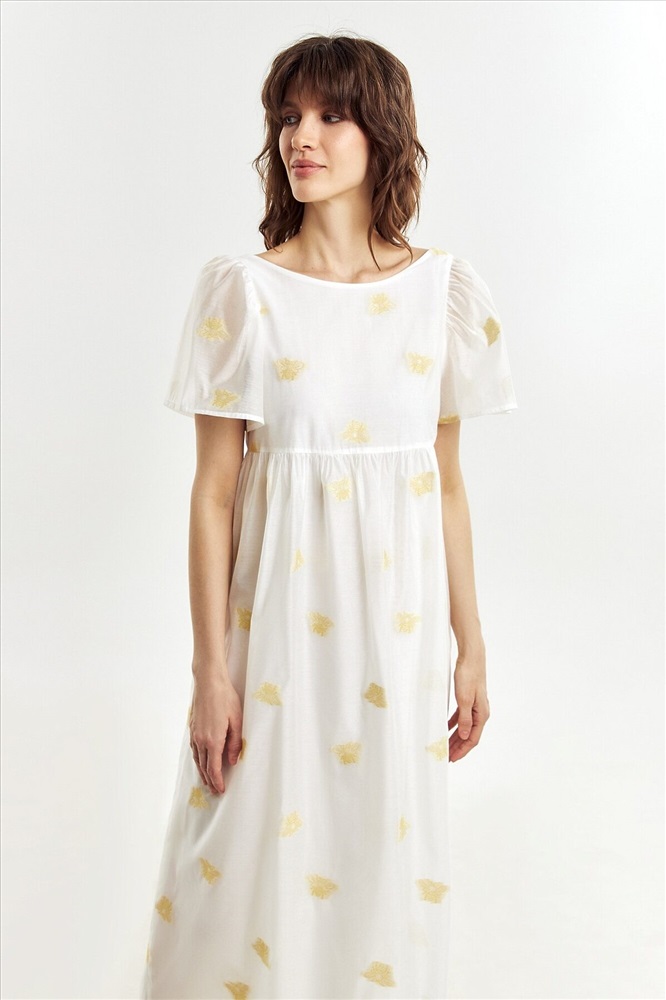 ID товара: 970478 Состав: Вискоза 65%, Полиамид 25%, Полиэстер 10%; Подкладка- Вискоза 100% Сезон: Весна/Лето Длина: Миди Фасон: Свободный крой Рукав: короткие Подкладка: Есть Вырез горловины: Округлый Рисунок: Цветы Декоративные элементы: Принт Основная ткань: Вискоза Стиль: Романтический Страна бренда: Россия Страна производства: Россия Легкое платье свободного кроя в романтическом стиле из вискозной ткани с вышивкой. Вырез горловины круглый, укороченный рукав-фонарик. Платье очень воздушное и комфортное в носке. На подкладке. Комментарии к товару