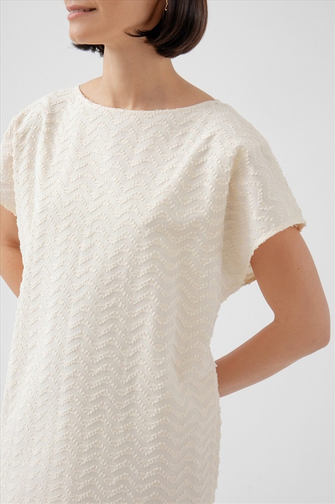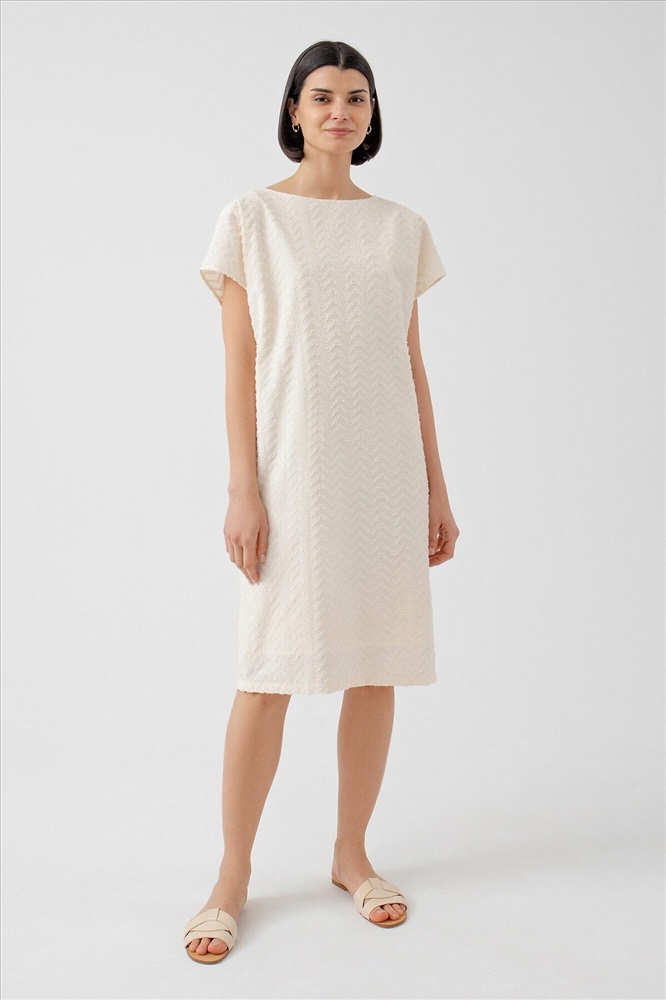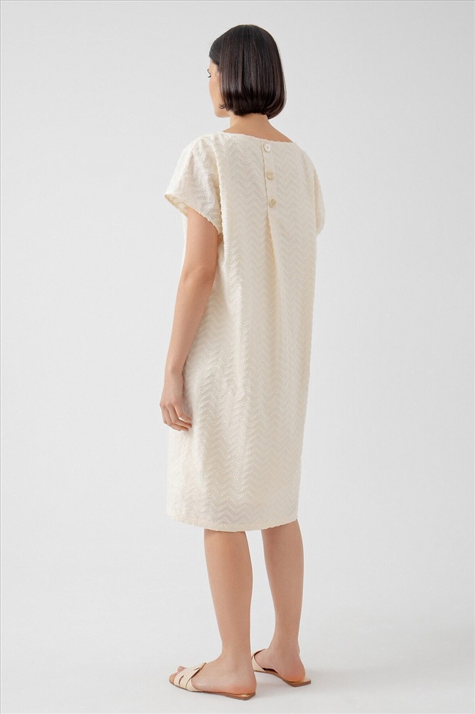 ID товара: 970487 Состав: Хлопок 100%; Подкладка- Хлопок 100% Сезон: Весна/Лето Длина: Ниже колена Фасон: Прямое Рукав: Короткие Подкладка: Есть Вырез горловины: "лодочка" Основная ткань: Хлопок Стиль: Романтический Страна бренда: Россия Страна производства: Россия Платье-кокон с горловиной лодочкой, складкой на спине и планкой с имитацией пуговиц. Платье длиной до колена из хлопковой ткани с объемным шитьем. Комментарии к товару