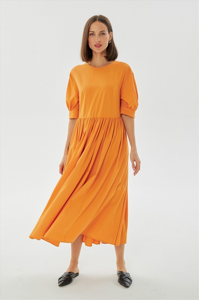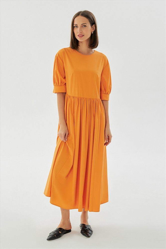 ID товара: 970682 Состав: Хлопок 50%, Полиамид 50% Сезон: Весна/Лето Длина: Миди Фасон: Свободный Рукав: До локтя Вид застежки: Пуговица Вырез горловины: Округлый Основная ткань: Хлопок Стиль: повседневный Страна бренда: Россия Страна производства: Россия Хлопковое платье прямого силуэта, отрезное по линии талии, на спинке капля с пуговицей. Юбка собрана на сборку для придания образу нежности и романтизма. Выполнено из хлопковой ткани в цвете "золотая охра". Комментарии к товару