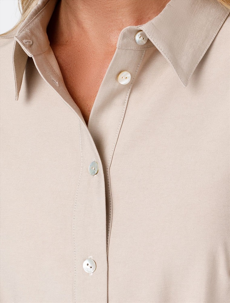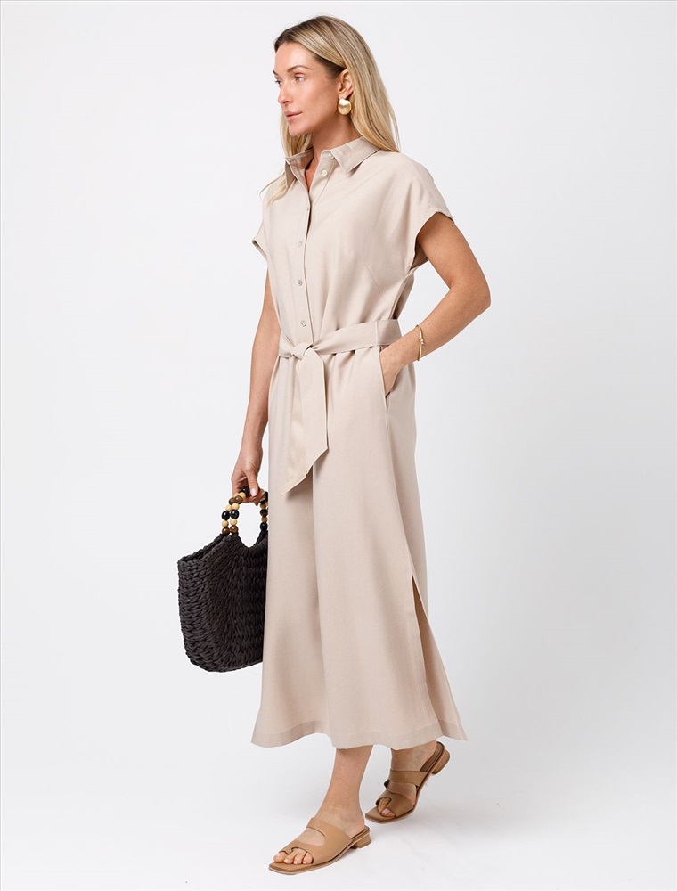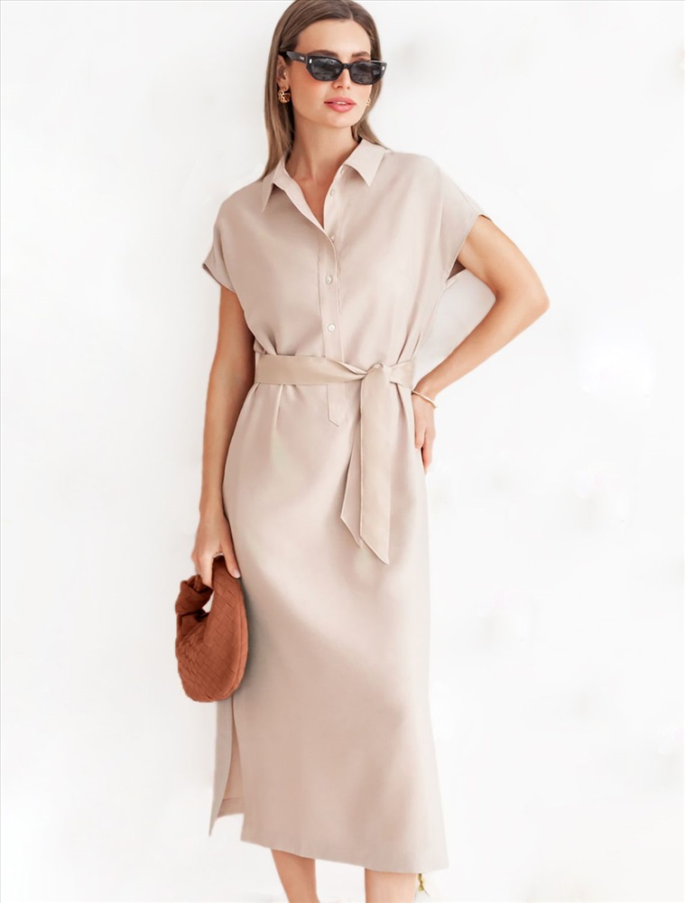 Платье-рубашка выполнено из плотного лиоцелла. Модель прямого кроя дополнена поясом из репсовой ленты в тон изделия. Деликатный блеск ткани подчеркивают пуговицы из натурального перламутра. Ткань хорошо держит форму, плавно драпируется и не просвечивает. В теплое время года приятно охлаждает кожу. Добавление синтетических волокон в составе изделия, предотвращает сминаемостьи поддерживает формоустойчивость.