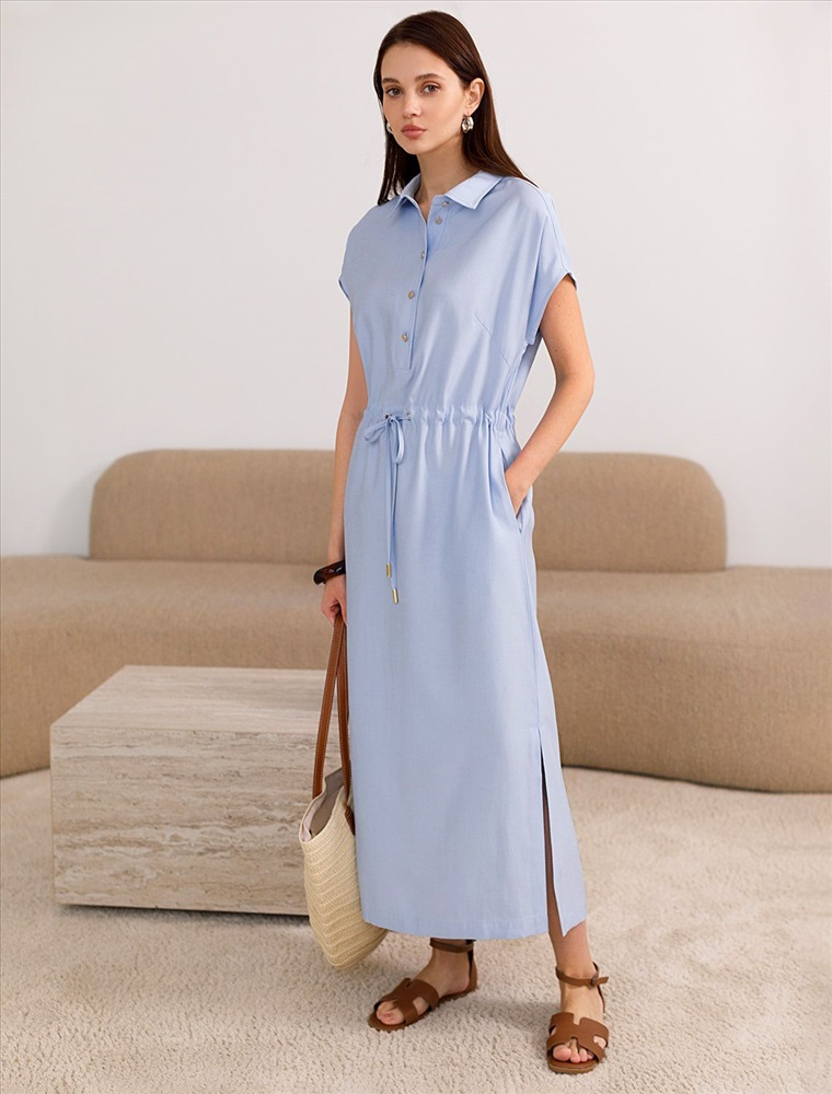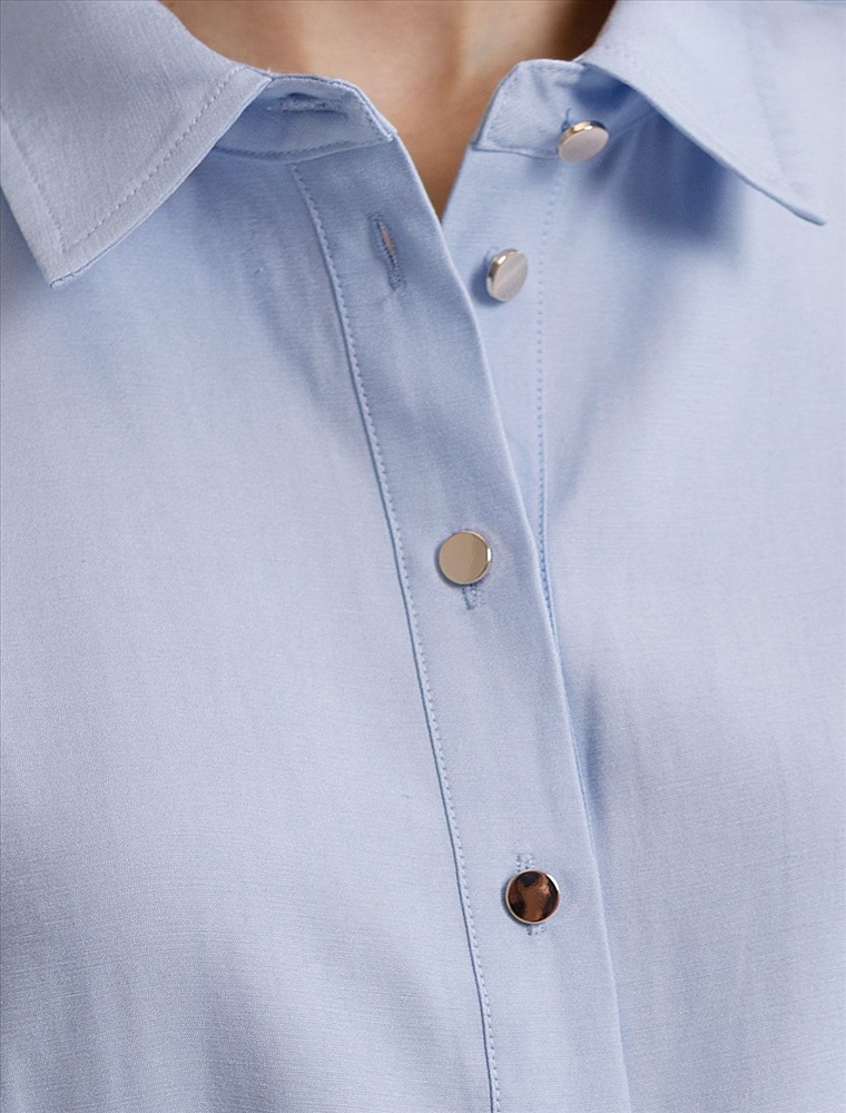 Платье-рубашка голубого цвета выполнено из плотного лиоцелла.Лиоцелл это более дорогой и экологичный вариант вискозы, очень прочный и шелковистый. Ткань отличается от регулярной коллекции из лиоцелла - она содержит еще больше лиоцелла (92%), благодаря чему имеет более нежную шелковистую фактуру. Легкое платье на пуговицах будет идеальным выбором для весны и лета. Отложной воротник добавляет классический акцент, кулиска подчеркивает талию, делая силуэт выразительным и женственным. Платье с коротким цельнокроеным рукавом смотрится современно, а разрезы по бокам добавляют легкости и динамики образу. Платье подойдет на большие размеры, скроет возможные недостатки и подчеркнет достоинства фигуры. На высокий рост платье будет длины миди, а на низкий рост - длина макси. Такое красивое и комфортное платье подойдет для работы, городской прогулки и повседневного стиля.