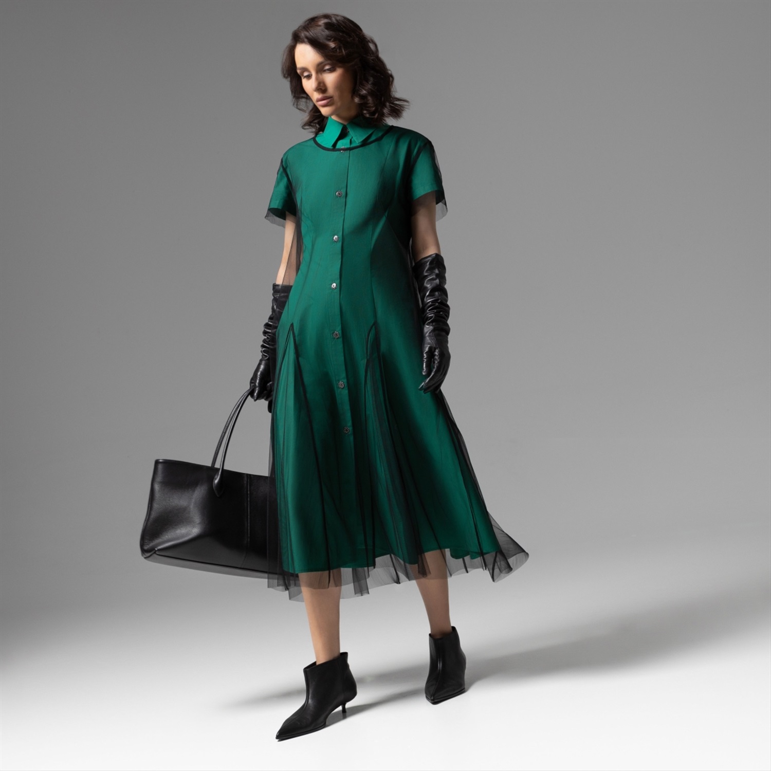 В тренде не бриллианты, а изумруды. Свежее прочтение образа для светских коктейльных встреч от CHARUTTI. Уникальность подчеркивает накидка из сетки высокого уровня прочности и мягкости. Остаться без внимания нет возможности. Комплект состоит из платья приталенного силуэта и накидки из сетки по лекалу платья. Безупречное исполнение швов. Накидка с изящными тонкими завязками по спинке. Изделия можно носить отдельно друг от друга. Комментарии к товару
