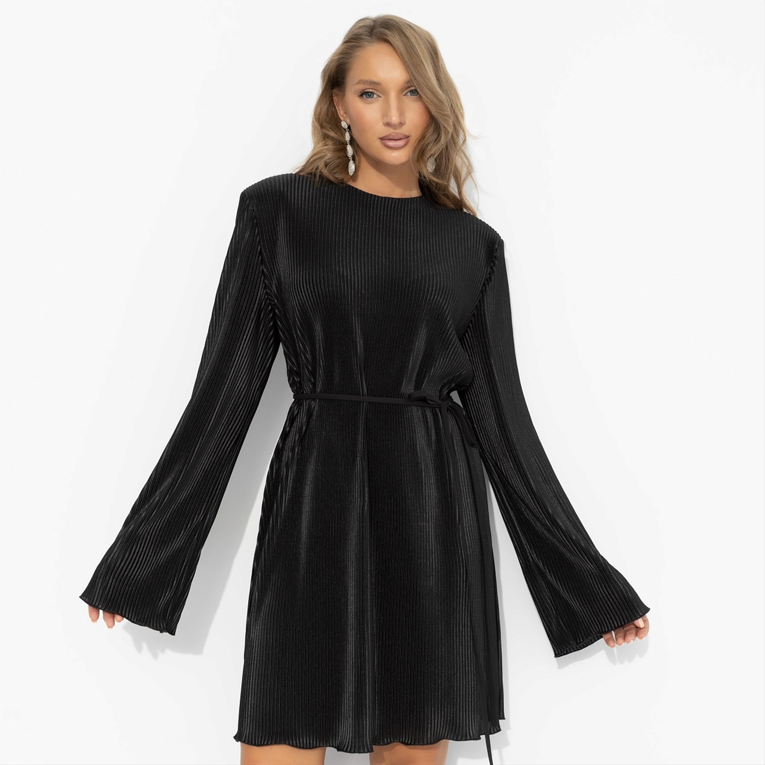 Платье-хит, в котором легко потерять счёт времени – и заставить других потерять голову. Она кружится в потоке мгновений – и всё внимание принадлежит ей. Свободный силуэт с поясом тонко подчёркивает талию и уверенность. Мягкий трикотаж «гофре» струится, переливается при каждом движении, подчеркивает осанку и уверенность. Платье со свободными рукавами на подплечниках. Комментарии к товару