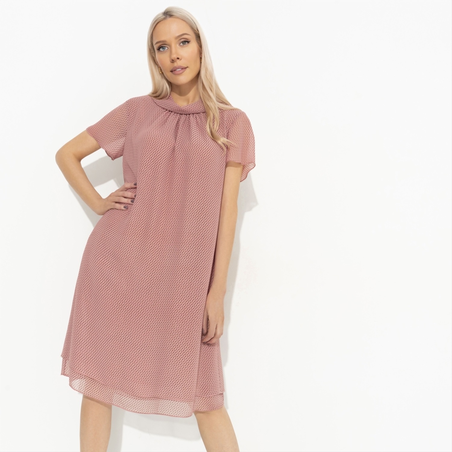Платье с декоративным воротником, Мечтательная (розовый)