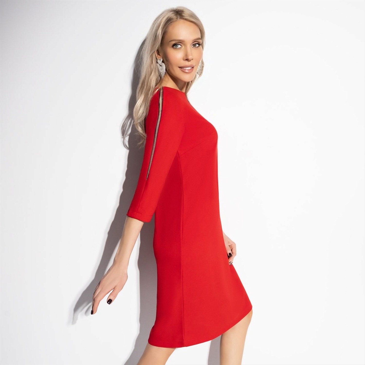 Красное платье, которое работает как магнит. Оно оживляет кожу, усиливает взгляд, настраивает на волну притяжения. Универсальный выразительный силуэт платья украсит обладательницу любой фигуры. В нём вы будто светитесь изнутри, притягивая любовь взглядом, движением, дыханием. В нём вы не ищете любовь ‒ любовь сама ищет вас. Платье прямого силуэта с акцентными рукавами. Рукав с декоративной молнией, чуть заужен. Комментарии к товару