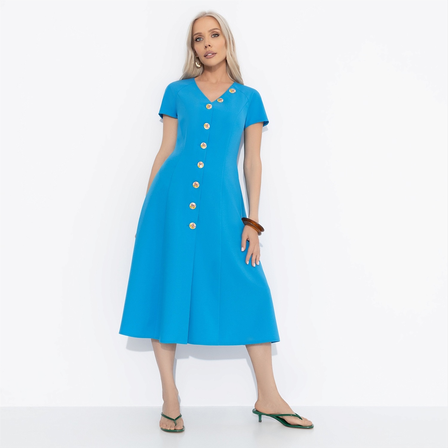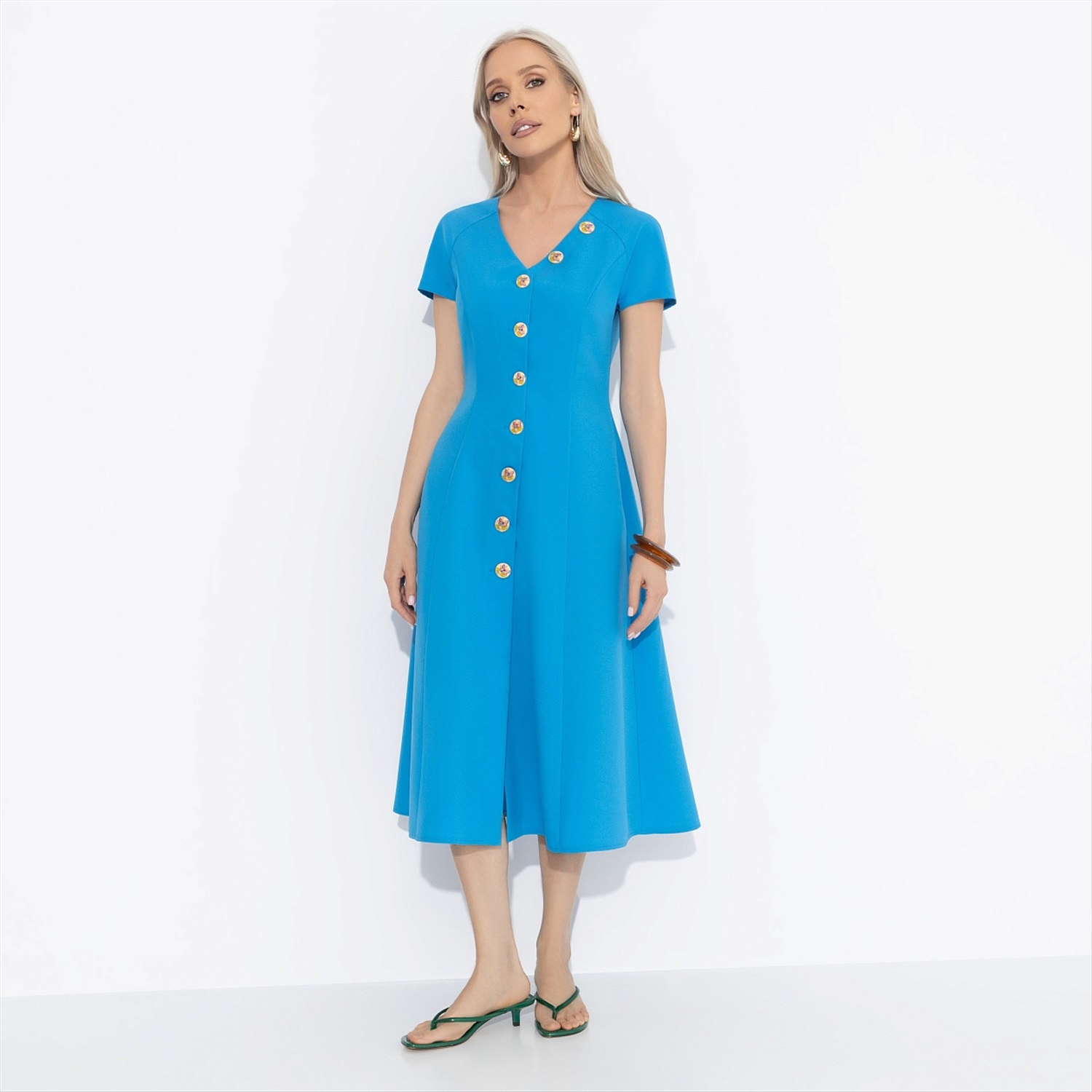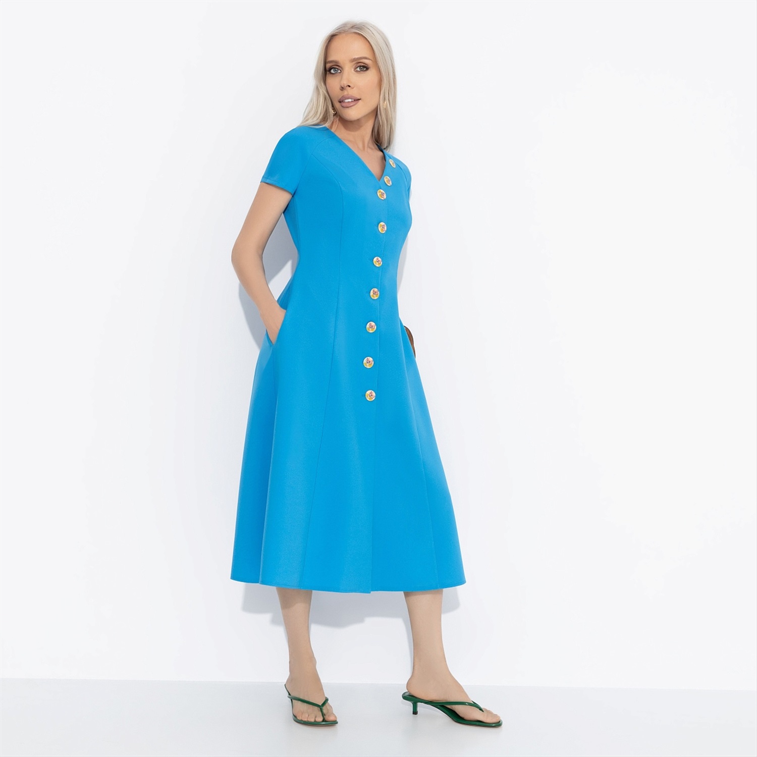 Платье CHARUTTI выглядит, как приглашение пойти на свидание. Женственное и элегантное, оно характеризует вас как порядочную и статную особу. Образ CHARUTTI, в который влюбляешься. Платье приталенного силуэта в длине миди. Акцентные пуговицы изделия. Есть деликатный разрез спереди по линии пуговиц. Платье с карманами. Комментарии к товару