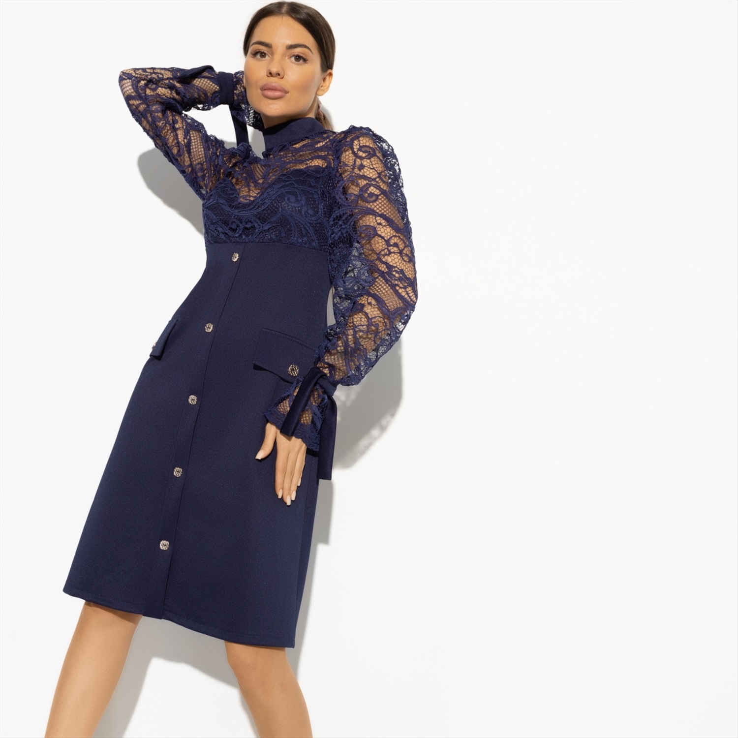 «Галочка, ты не поверишь! Кружево снова в моде!» – с такими словами ты ворвалась к подруге. Но Галочка была более оперативна и уже красовалась перед зеркалом в платье CHARUTTI с прозрачными элементами. Подруга ли она после этого? Платье в длине мини. Приталенный силуэт. Имитация карманов. Акцентные декоративные пуговицы по длине изделия. Деликатные пуговицы-застежки на вороте с задней части изделия.