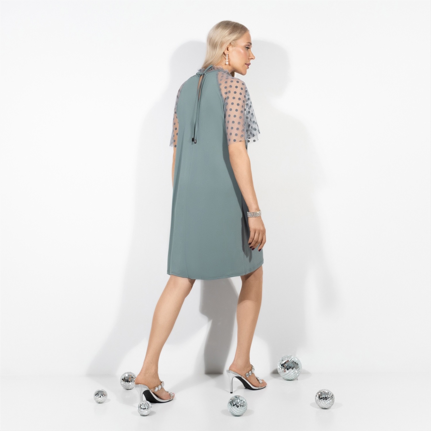 Состав: Трикотаж «масло», «сетка флок» (95% п/э, 5% спандекс) Плотность ткани: Средняя Тип ткани: Трикотаж Вид застежки: Завязки Карманы: Нет Основной цвет ткани: Серый Отрезная талия: Нет Подклад: Есть Резинка по талии: Нет Рисунок/раппорт: Нет, все изделия идентичны Сезон: Круглогодичный Прозрачность держится в топе трендов. Это модное веяние выделяет вас среди окружающих. Но также обращает на себя внимание нетривиальный цвет платья CHARUTTI. Разбавленный оливковый в сочетании с кружевом сделает вас королевой вечеринки. Платье прямого силуэта в длине до колена. Акцентные прозрачные рукава. Декоративная сборка в зоне груди. Есть завязки по задней части изделия. Представьте себе вечер, где каждый взгляд прикован к вам — благодаря потрясающему платью с завязками на спинке «Светиться изнутри». Это вечернее платье женское создано для тех, кто любит выделяться и покорять. Трикотаж «масло» и «сетка флок» дарят ощущение легкости и нежности, обволакивая каждое ваше движение. Разбавленный оливковый цвет с кружевными элементами придает образу изысканность и шарм. Прозрачные рукава добавляют таинственности и интриги, подчеркивая вашу индивидуальность. Такое платье вечернее женское — ваш билет в мир восхищения и комплиментов. Если вы планируете закупать платья женские оптом, это изделие станет отличным выбором для вашего ассортимента. Прямой силуэт и длина до колена делают его универсальным и подходящим для разных типов фигуры, включая платье женское больших размеров. Декоративные элементы, такие как сборка в зоне груди и завязки на спине, делают платье не только стильным, но и удобным. Оно создано для того, чтобы каждая женщина могла почувствовать себя королевой вечеринки. Не упустите шанс предложить своим клиентам платье, которое станет их фаворитом. Платье «Светиться изнутри» — это не просто одежда, это выражение стиля и уверенности. В мире, где мода быстро меняется, такое платье женское осеннее или летнее станет настоящей находкой для тех, кто хочет идти в ногу со временем. Трикотажное платье женское идеально подходит для любого сезона, подчеркивая вашу элегантность и вкус. Если вы ищете теплое платье женское для холодных вечеров, то это изделие также станет отличным выбором. Ваши клиенты оценят не только его внешний вид, но и комфорт, который оно приносит. Закупая его оптом, вы делаете инвестицию в стиль и комфорт ваших покупателей. Комментарии к товару