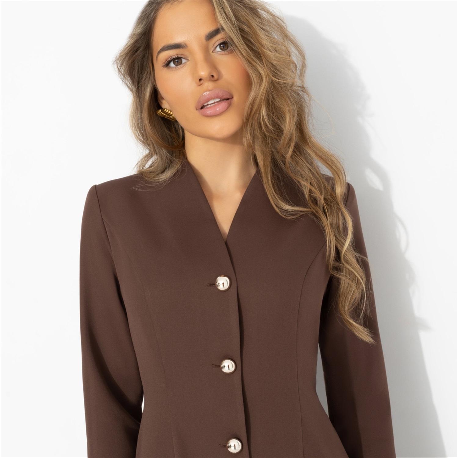 Настоящая опасность – это не яркость, а глубина. Оттенок брауни делает сдержанным и неотвратимо притягательным. Как заклинание, которе нельзя отразить, оно моментально запечатлеет твой образ в его глазах. Комфортная ткань с эластаном, аккуратная посадка и выверенный крой. Цвет брауни универсален и легко адаптируется под дневные и вечерние образы. Отлично сочетается с классической обувью и минималистичными аксессуарами.