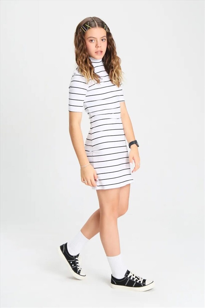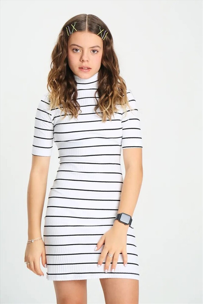 Модное платье мини для девочки с коротким рукавом идеально подойдет на каждый день. Оно выглядит просто, но оригинально, поэтому подойдет для разных событий. Нежный трикотаж приятно прилегает к телу, хорошо тянется и обладает высокой воздухопроницаемостью. Короткая модель с воротником-стойкой станет отличной базой для создания стильных луков. Платье в рубчик повседневное станет одним из любимых в гардеробе юной модницы.