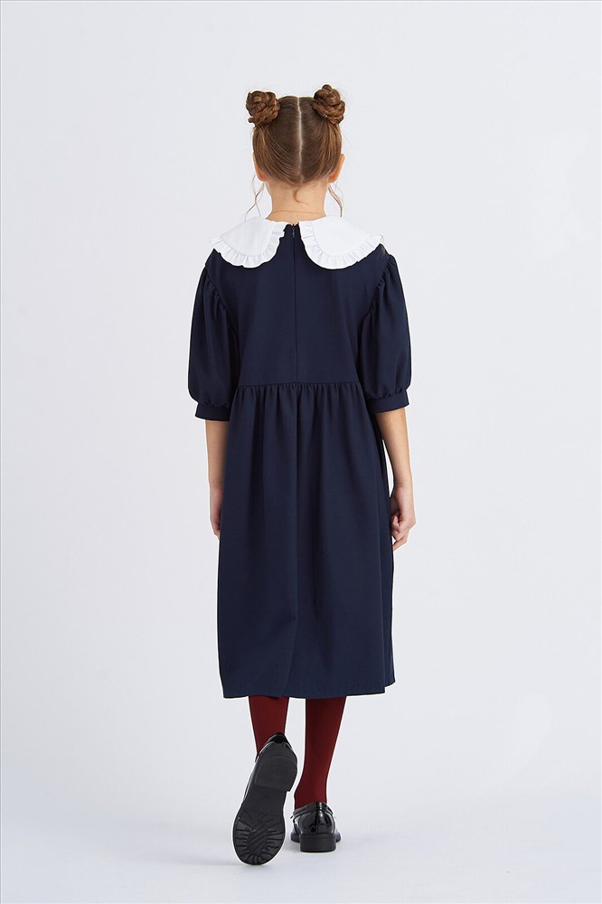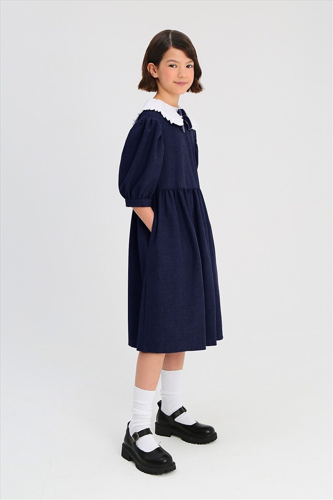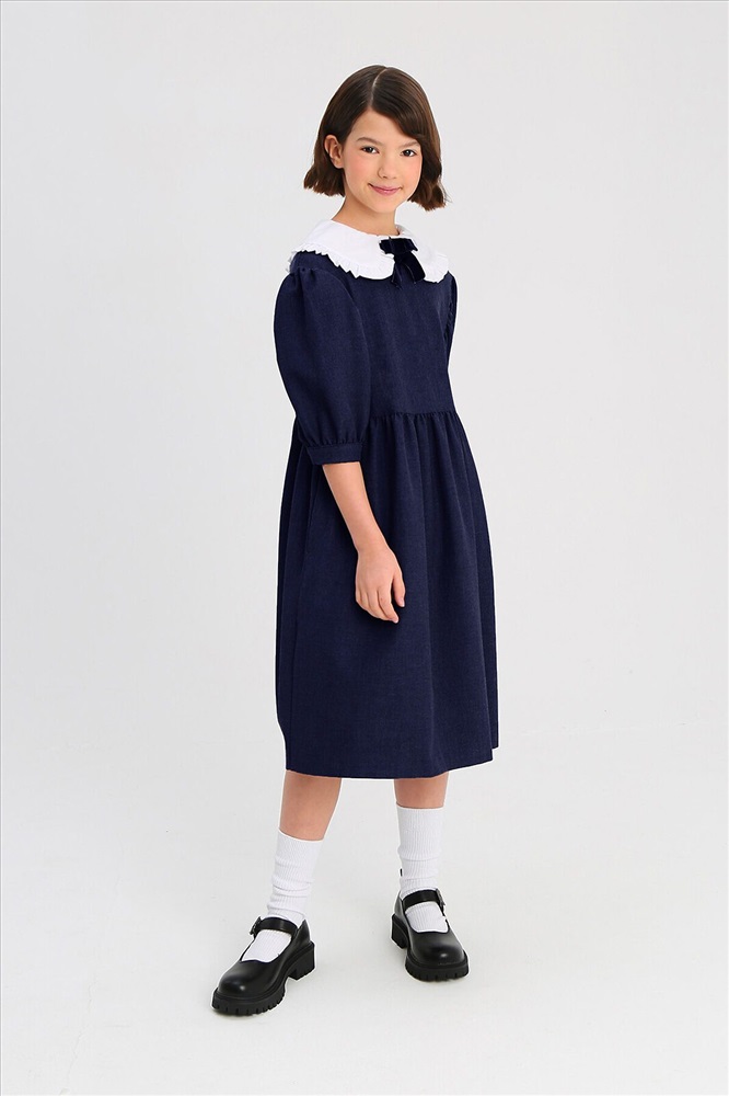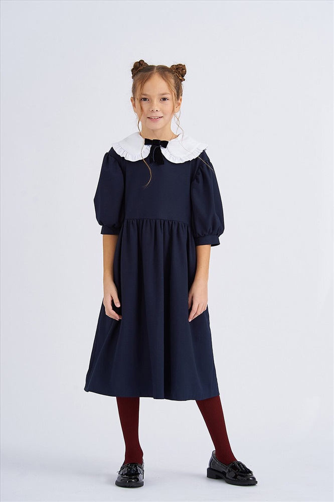 Страна производства: Россия Платье для девочки школьное синее из костюмной поливискозы свободного силуэта оверсайз, со съемным воротником и рукавами "фонарик". Платье школьное синее дополнено съемным объемным воротником с закругленными концами и украшен оборками по краю и съемным бантом из бархатной ленты. Юбка платье для девочек в мягкую складку. В боковых швах платья школьные для девочек расположены карманы. Нарядное платье для девочки имеет застежка на потайную молнию на спинке не нарушаая конструкцию и обеспечивает идеальную посадку. Платье школьное для девочки с кружевом отлично сочетается с гольфами или колготами. Платье на девочку школьное является базовым элементом одежда для школы. Силуэт оверсайз платье праздничное для девочки подразумевает сильно увеличенный объем, если девочка предпочитаете посадку по фигуре выбирайте на 1-2 размера меньше. Школьная форма для девочек и школьная одежда для девочек от бренда СМЕНА.