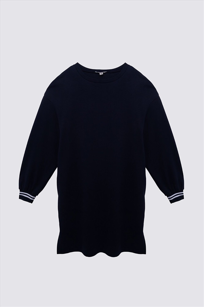 Страна производства: Россия Трикотажное платье PLUS SIZE свободного силуэта. Рукав спущенный, по низу трикотажный подвяз с контрастными полосками. В боковых швах расположены карманы, по бокам разрезы.
