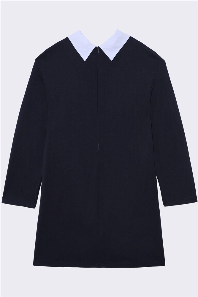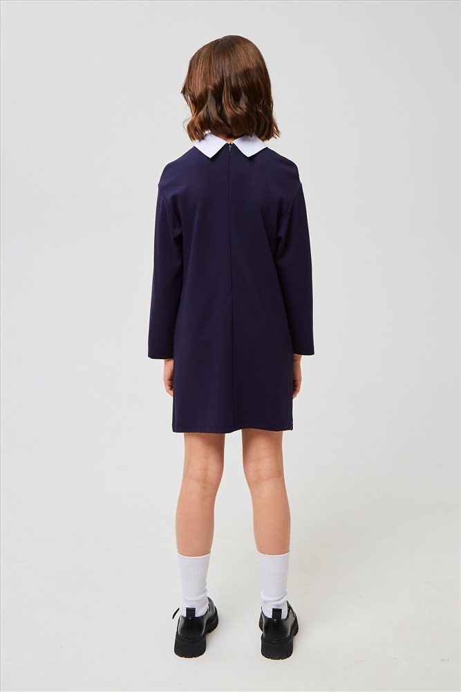 ID товара: 1135874 Состав: 58% Вискоза, 34% Полиамид, 8% Полиуретан Сезон: Демисезон Длина: Средняя Фасон: Прямое Рукав: Длинные Вид застежки: Молния Вырез горловины: Отложной воротничок Основная ткань: Вискоза Стиль: классический Страна бренда: Россия Страна производства: Россия Школьное платье прямого силуэта. Комментарии к товару