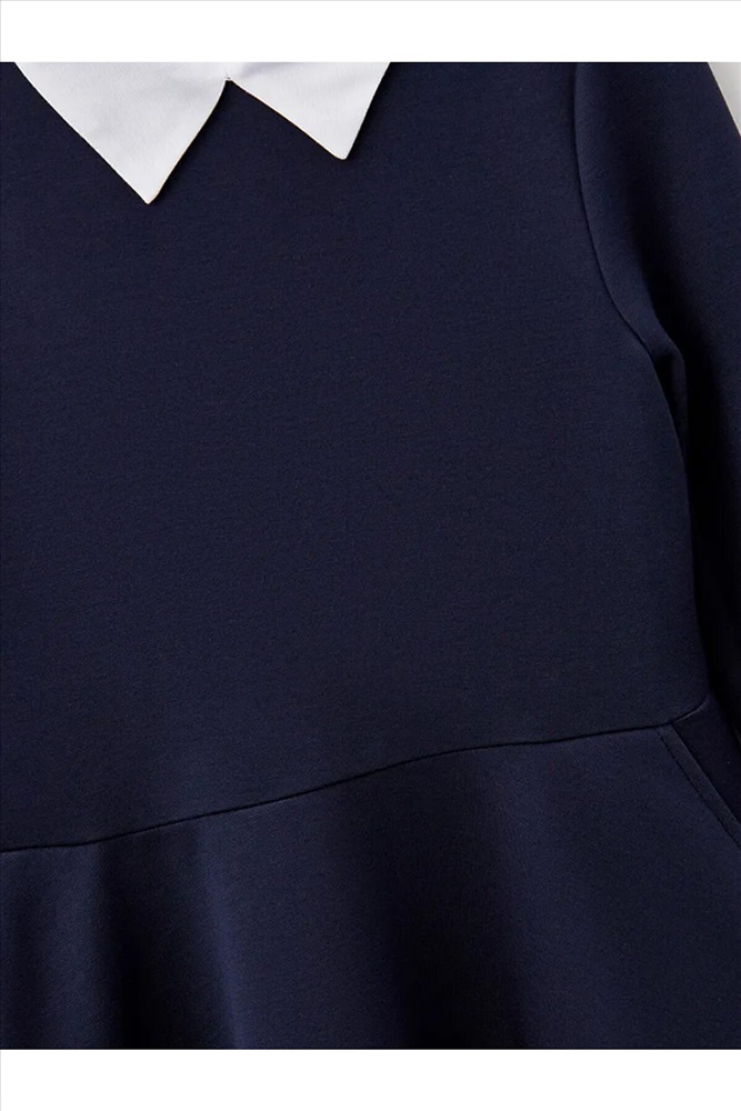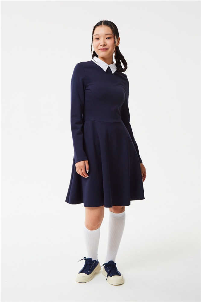 ID товара: 1135878 Акции: -5%, до 24.11.2025 Состав: 58% Вискоза, 34% Полиамид, 8% Полиуретан Сезон: Демисезон Длина: До колена Фасон: Приталенное Рукав: Длинные Вид застежки: Молния Вырез горловины: Отложной воротничок Основная ткань: Вискоза Стиль: классический Страна бренда: Россия Страна производства: Россия Трикотажное платье А-образного силуэта с длинными рукавами, отрезное по линии талии. Платье дополнено съемным отложным воротником контрастного белого цвета, что обеспечивает не только удобство в уходе, но и возможность разнообразить ежедневный образ. На переднем полотнище юбки расположены боковые карманы. Застежка на потайную молнию на спинке не нарушает конструкцию и обеспечивает идеальную посадку. Комментарии к товару