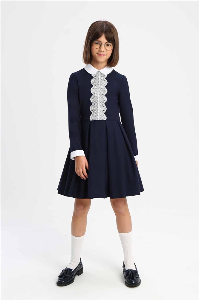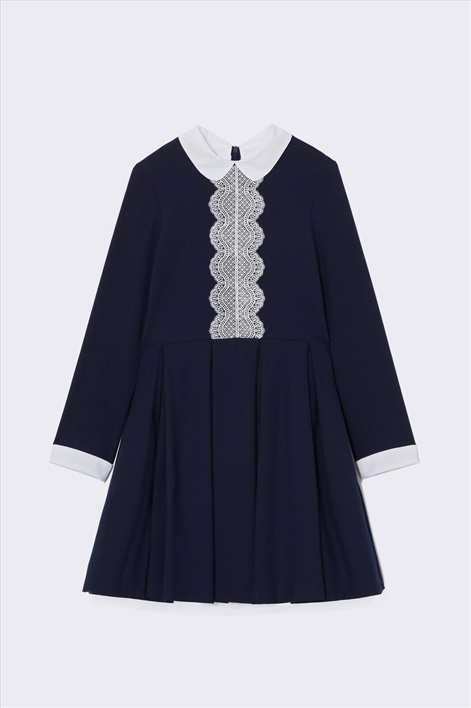 ID товара: 1135881 Состав: 48% Вискоза, 48% Полиэстер, 4% Полиуретан Сезон: Демисезон Длина: Средняя Фасон: Расклешенное Рукав: Длинные Вид застежки: Молния Вырез горловины: Отложной воротничок Основная ткань: Вискоза Стиль: классический Страна бренда: Россия Страна производства: Россия Эффектное платье А-силуэта со съемным воротником, контрастного белого цвета. С длинными втачными рукавами со съемными манжетами белого цвета, и юбкой колокол с мягкими складками. В боковых швах юбки расположены карманы.. Полочка декорирована кружевной аппликацией контрастного цвета Платье выполнено из износостойкой костюмной поливискозы с добавлением эластичных волокон, обеспечивающих комфорт в движении. Потайная молния на спинке - удобная застежка, с которой справится даже первоклашка. В комплекте предусмотрен съемный подъюбник на пуговицах. Комментарии к товару