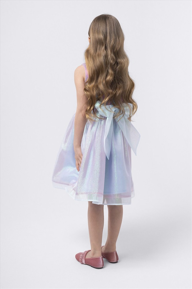 Праздничное детское платье из атласа — идеальный выбор для особых случаев и торжеств. Крой и силуэт: отрезное по линии талии с мягкими встречными симметричными складками на юбке, создающими пышный и воздушный образ. Застёжка: центральная потайная молния по спинке через талию для удобного надевания. Детали: пояс, котрый заязывается в виде бантика как спереди, так и сзади.