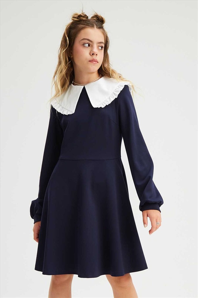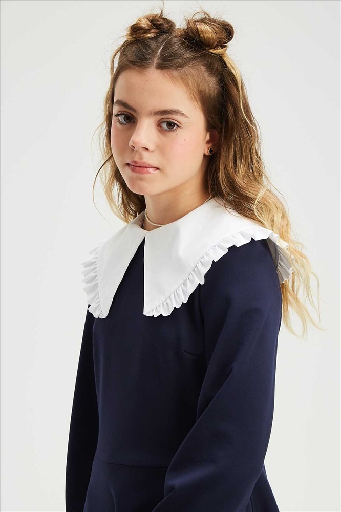 Трикотажное платье для девочек — это стильная и удобная одежда, которая идеально подходит для повседневной носки и праздничных мероприятий. Платье выполнено из высококачественного материала, который обеспечивает максимальный комфорт и легкость в носке. Замок-молния облегчает процесс одевания и делает его максимально удобным. Два скрытых кармана на юбке обеспечивают дополнительное удобство и практичность. Съемный белый воротник с оборками добавит романтичности и формальности образу. Он легко снимается и надевается с помощью пуговиц, что позволяет выбирать между классическим и повседневным стилем, в зависимости от случая.