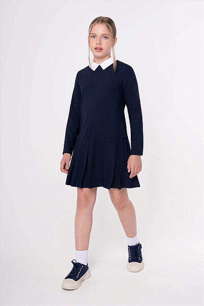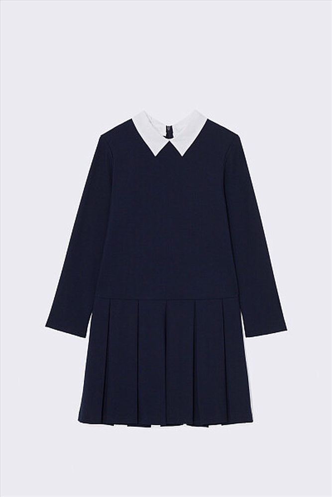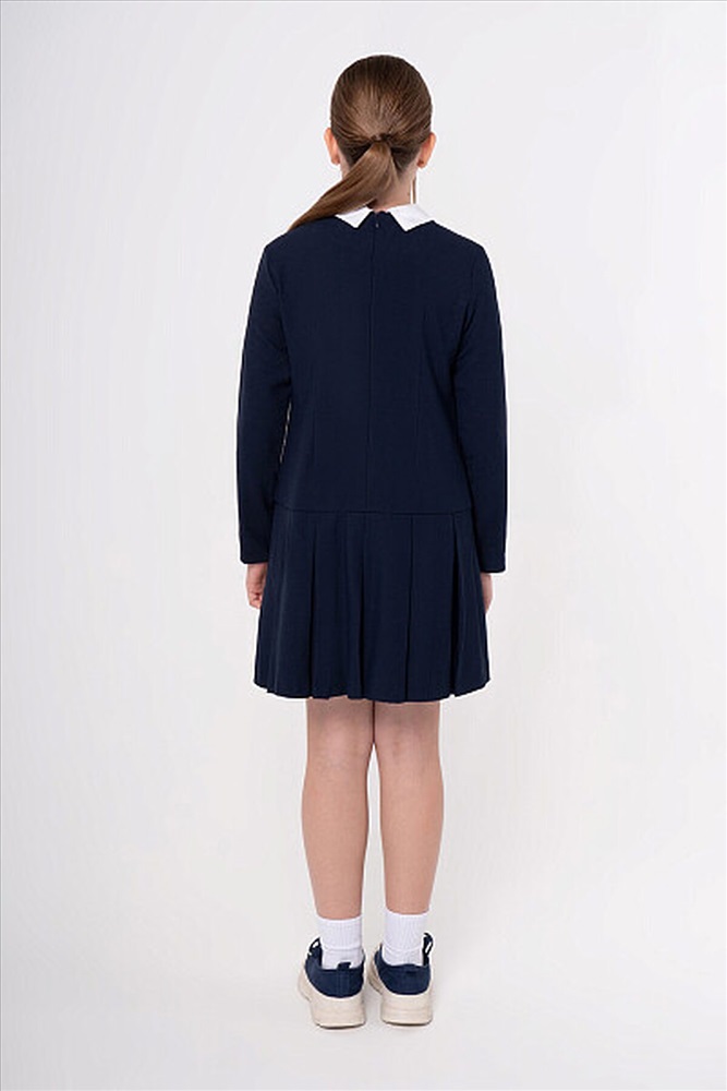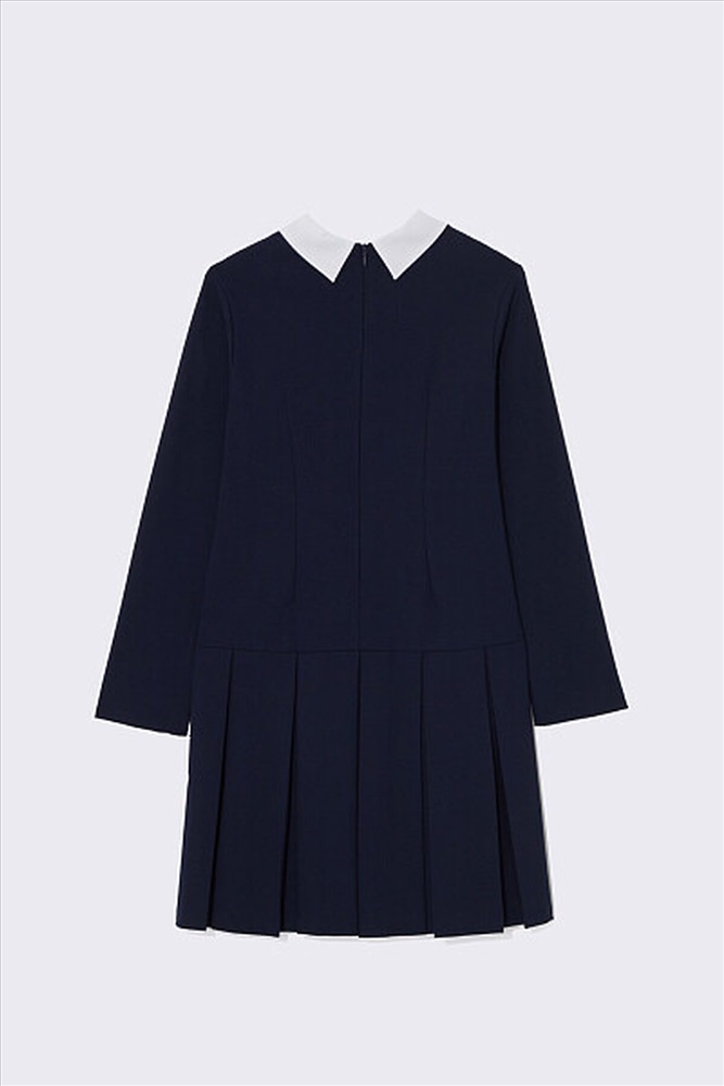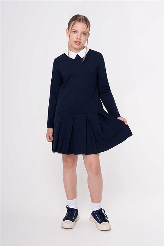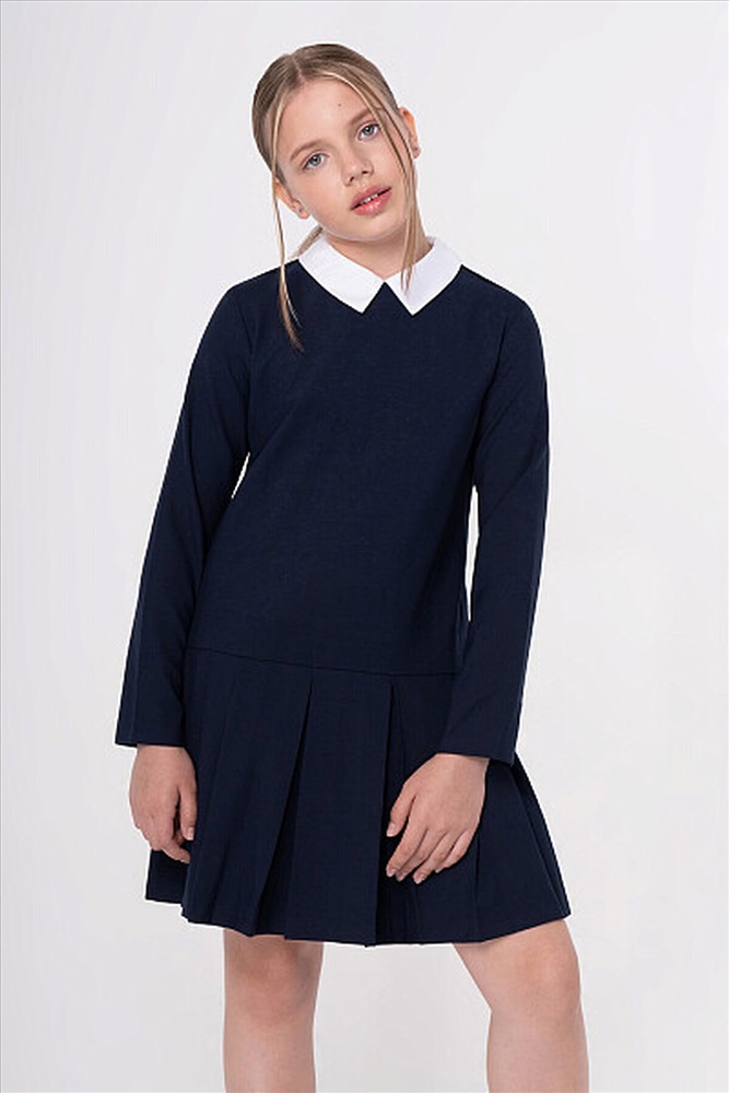 Стильное элегантное платье с заниженной линией талии. Дополнено съемным отложным воротником контрастного белого цвета, что обеспечивает не только удобство в уходе, но и возможность разнообразить ежедневный образ. Юбка в широкую складку. Застежка на потайную молнию на спинке не нарушает конструкцию и обеспечивает идеальную посадку.