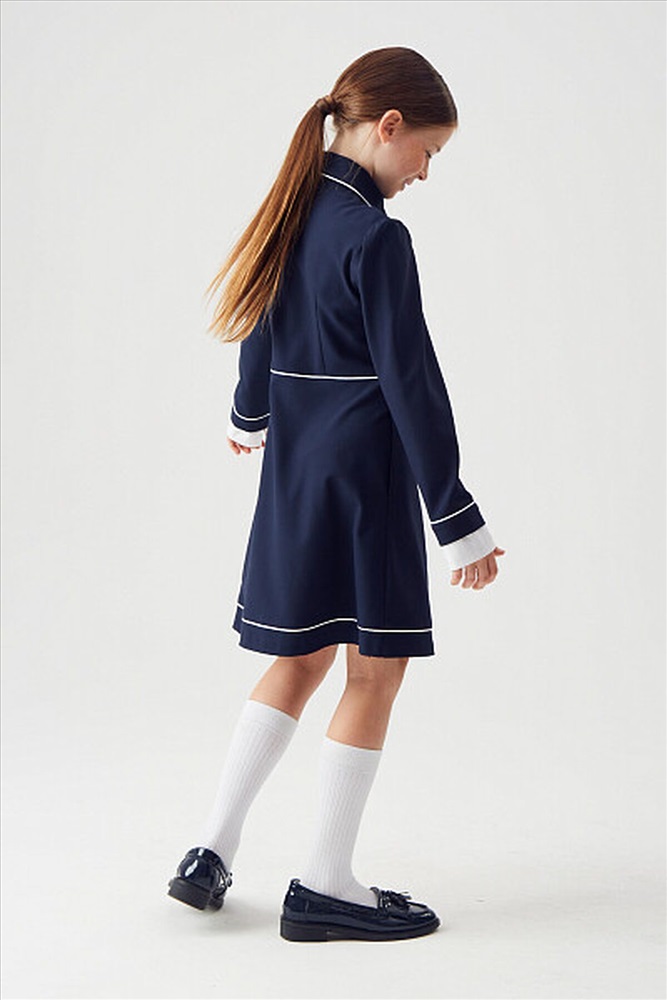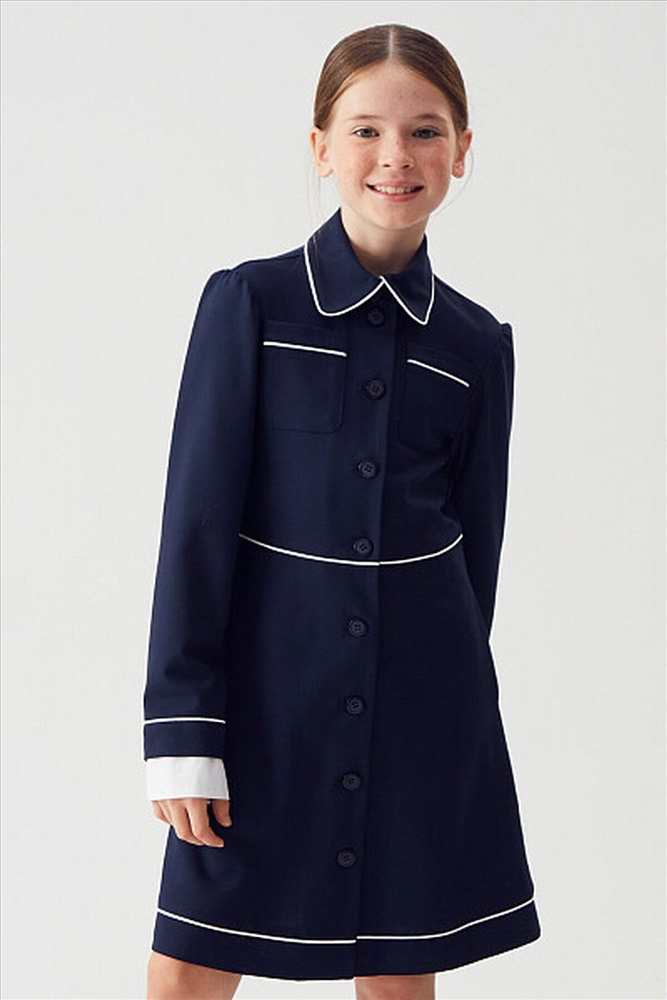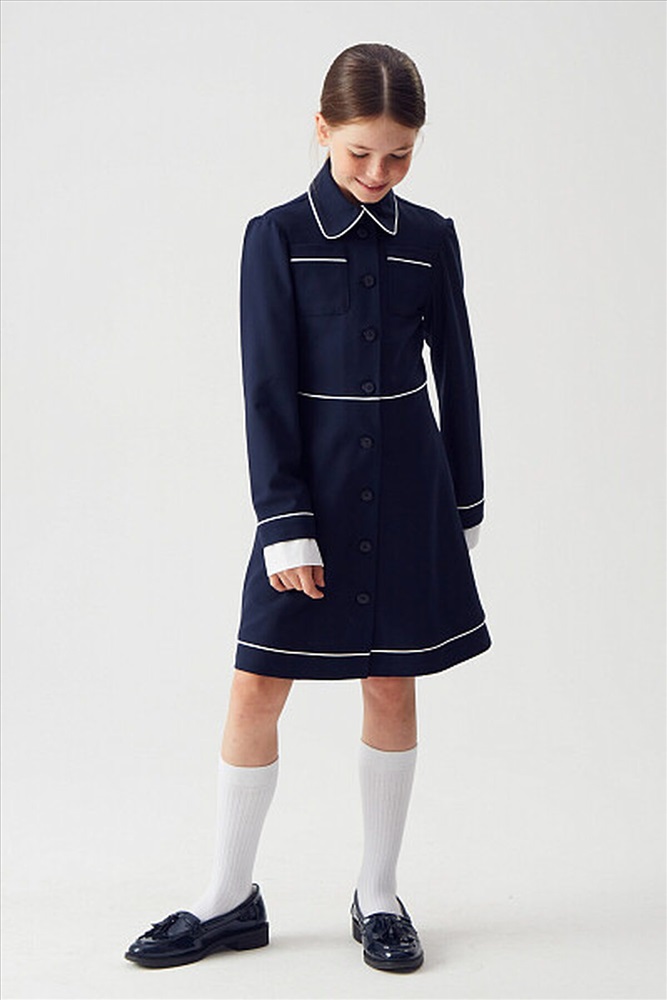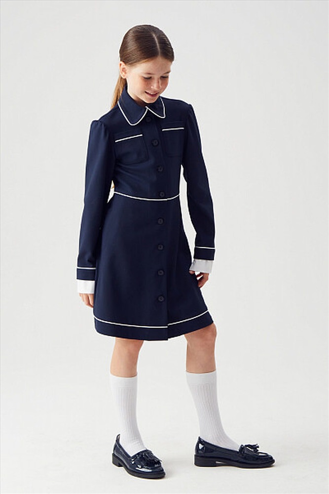 Трикотажное платье для девочек станет идеальным выбором для школы. Оно отличается удобством и стильным дизайном, что делает его подходящим для повседневной носки. Застежка посередине полочек обеспечивает легкость одевания и создает аккуратный внешний вид.На верхней части полочек настрочены прямоугольные карманы, которые не только добавляют функциональности, но и служат украшением. Длинные рукава на манжетах придают образу завершенность и защиту от холода в прохладную погоду.