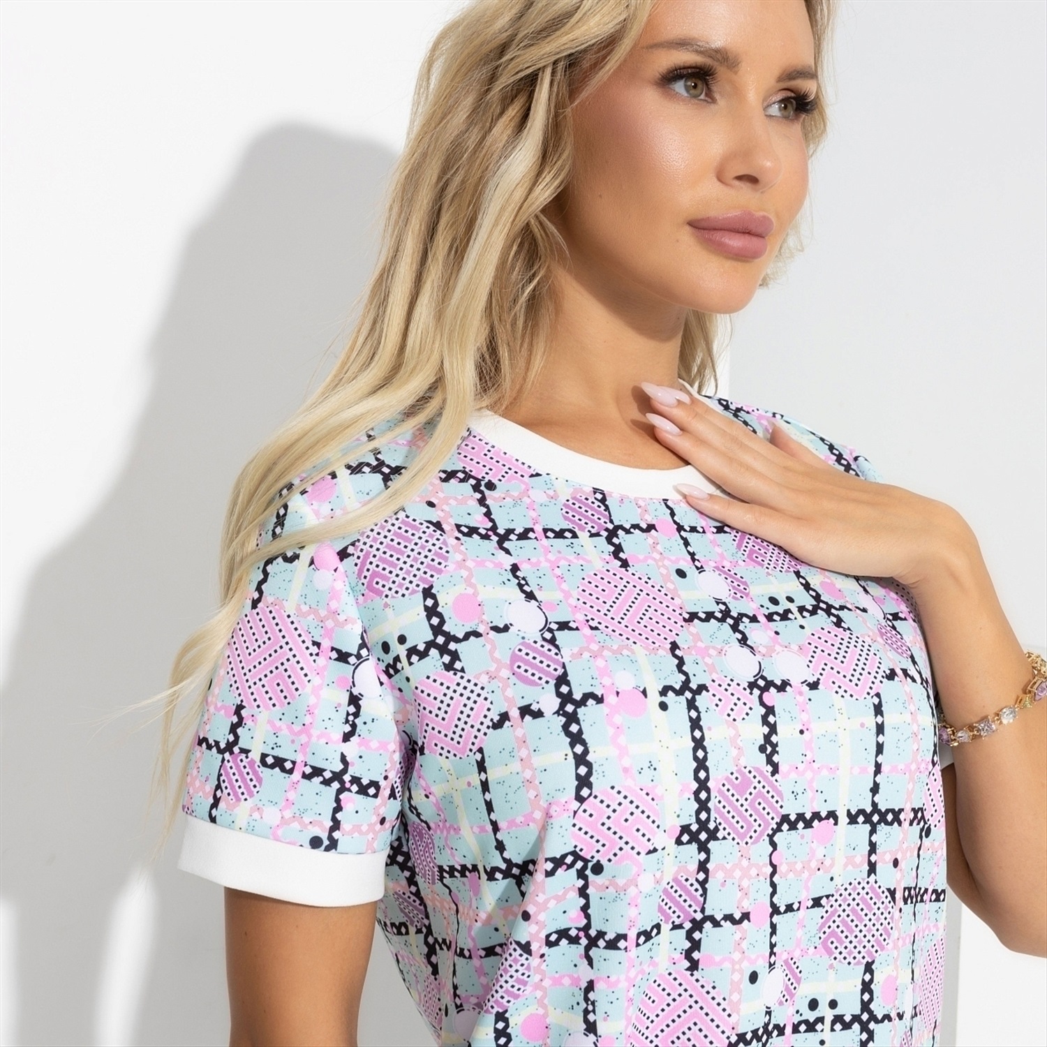 Состав: «Скуба набивная» (95% п/э, 5% спандекс) Плотность ткани: Средняя Тип ткани: Трикотаж Вид застежки: Нет Дополнительный цвет ткани: Белый Карманы: Нет Основной цвет ткани: Разноцветный Отрезная талия: Нет Подклад: Нет Резинка по талии: Нет Рисунок/раппорт: Каждое изделие уникально из-за расположения рисунка на ткани Сезон: Лето