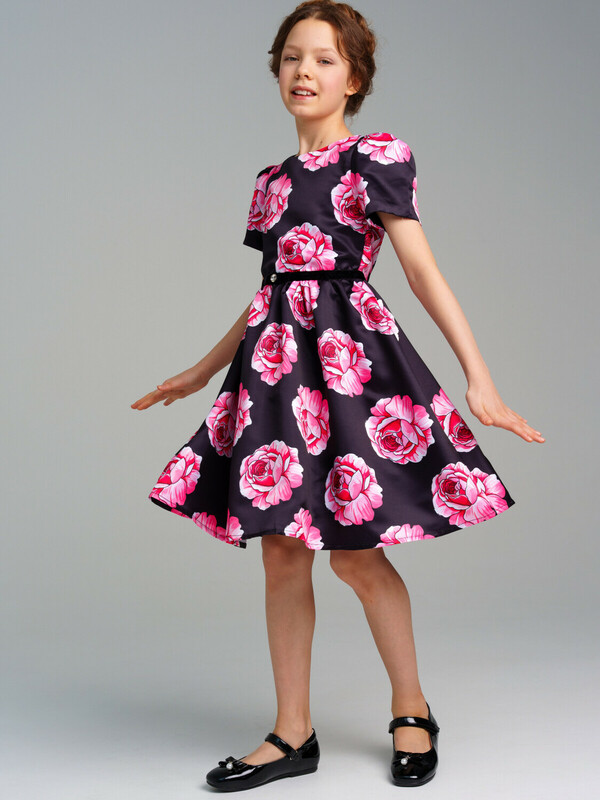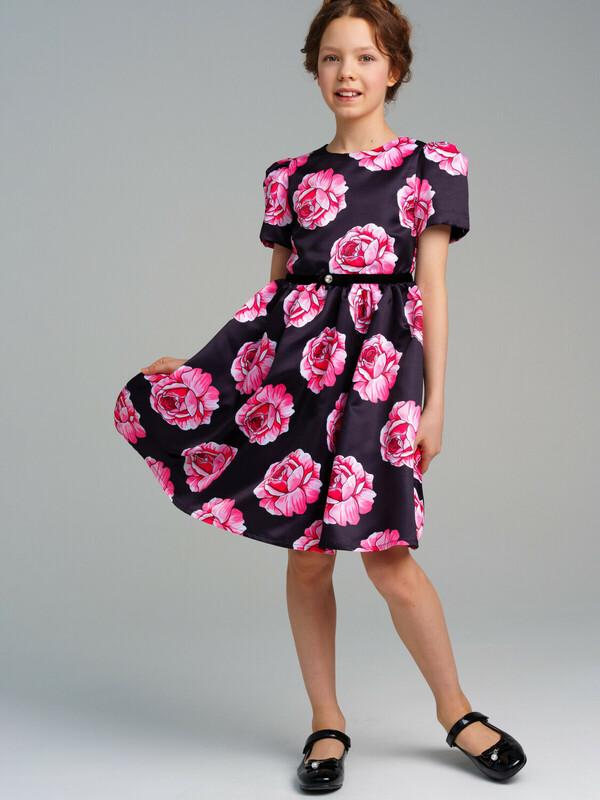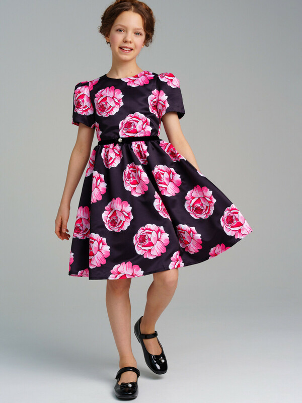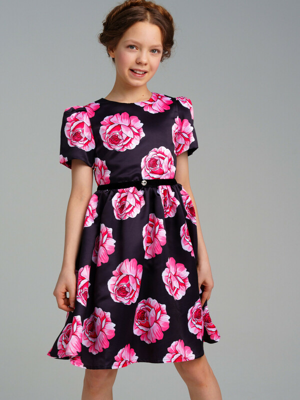 Производитель: PlayToday Нарядное платье. Верх из сатина. Текстильная подкладка из поплина. Бархатный пояс с бантиком. Застежка на потайную молнию на спине.