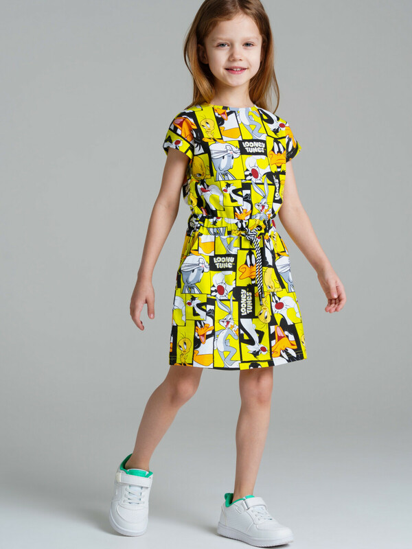 Платье из качественного и приятного на ощупь трикотажа джерси. Высокое содержание хлопка 95%. Благодаря наличию эластана в составе ткани изделие проще в уходе и держит форму. По талии утяжка шнурком. Функциональные карманы.