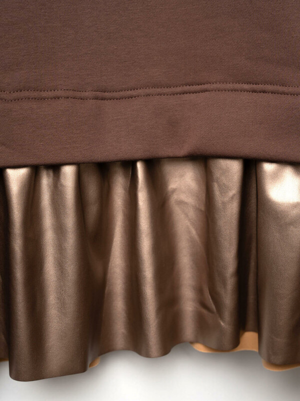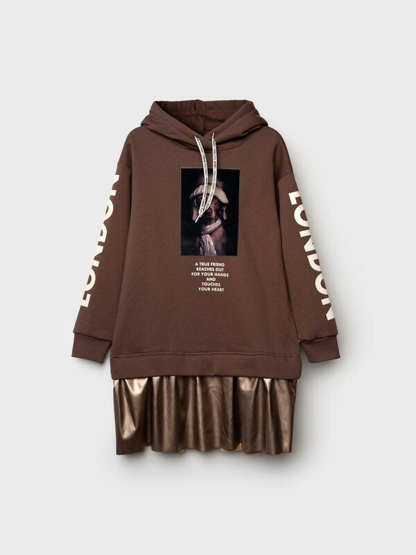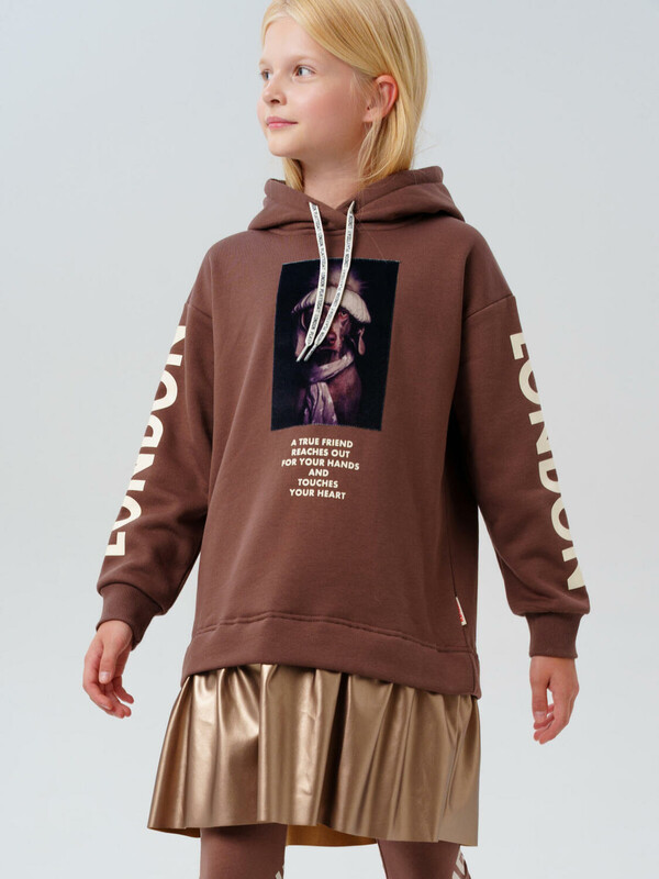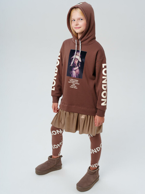 Преимущества модели: Трикотажное платье оверсайз — ультрамодный силуэт, подходящий для любого типа фигуры + подростковое платье с принтом на велюре — яркий акцент в образе + декоративная кожаная вставка — актуальный fashion-элемент + принт по рукавам — стильный городской стиль + трикотаж высокого качества — мягкий, дышащий, не сковывает движений + платье-худи для девочки — идеально для школы, прогулок и поездок + размерный ряд от 128 до 170 см — универсальная посадка для подростков Модель выполнена из мягкого трикотажного полотна, обеспечивающего комфорт и свободу движений в течение дня. Удлинённый крой в стиле худи, трендовый принт на велюре, надписи по рукавам и кожаная декоративная вставка делают это платье не просто одеждой, а полноценной модной деталью гардероба подростка. Когда и как носить: Это повседневное платье для девочек-подростков идеально подойдёт для школы, прогулок, встреч с друзьями, поездок. Его можно носить с плотными легинсами, джинсами, лонгсливом под низ или как самостоятельный наряд. Актуально в любое время года: весной и осенью — как основа образа, зимой — под тёплый пуховик. Советы по стилю: Сочетайте с кроссовками, высокими носками, рюкзаком или поясной сумкой — получится лук в уличном стиле. Для образа в стиле спорт шик — добавьте легинсы или утеплённые колготки и объемную куртку. Это платье станет любимым элементом гардероба юной модницы — удобное, стильное, оригинальное. Подходит для девочек от 8 до 16 лет. Состав:60% хлопок, 40% полиэстер Комментарии к товару