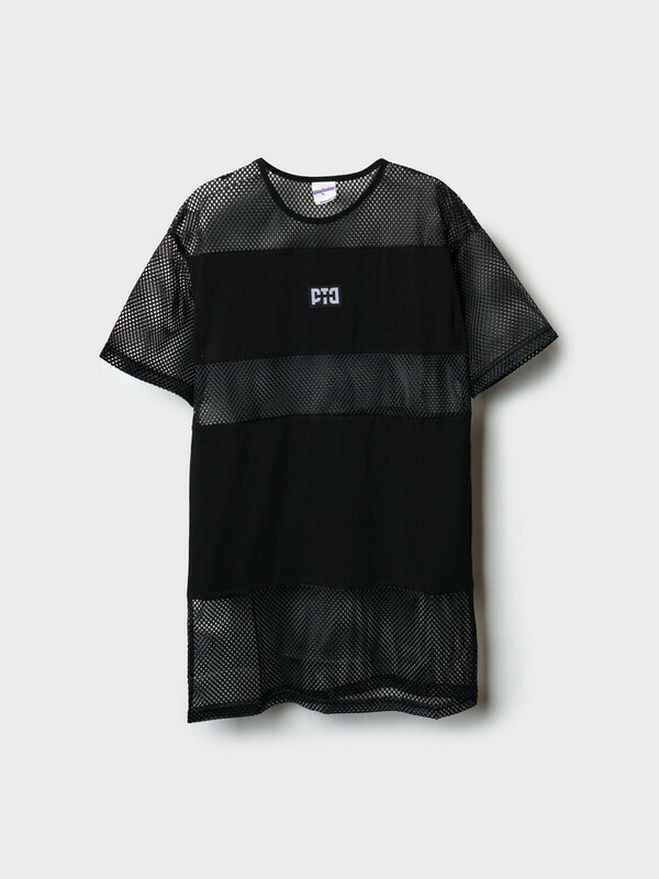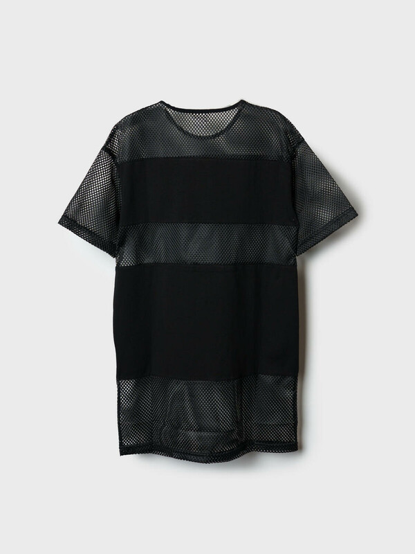 Пляжное оверсайз платье для девочки подростка. Модель в длине мини, выполнена из комбинации хлопкового трикотажа джерси и сетки. На груди размещён небольшой логотип в виде жаккардовой нашивки. Можно составить family look cо взрослым вариантом аналогичного дизайна.