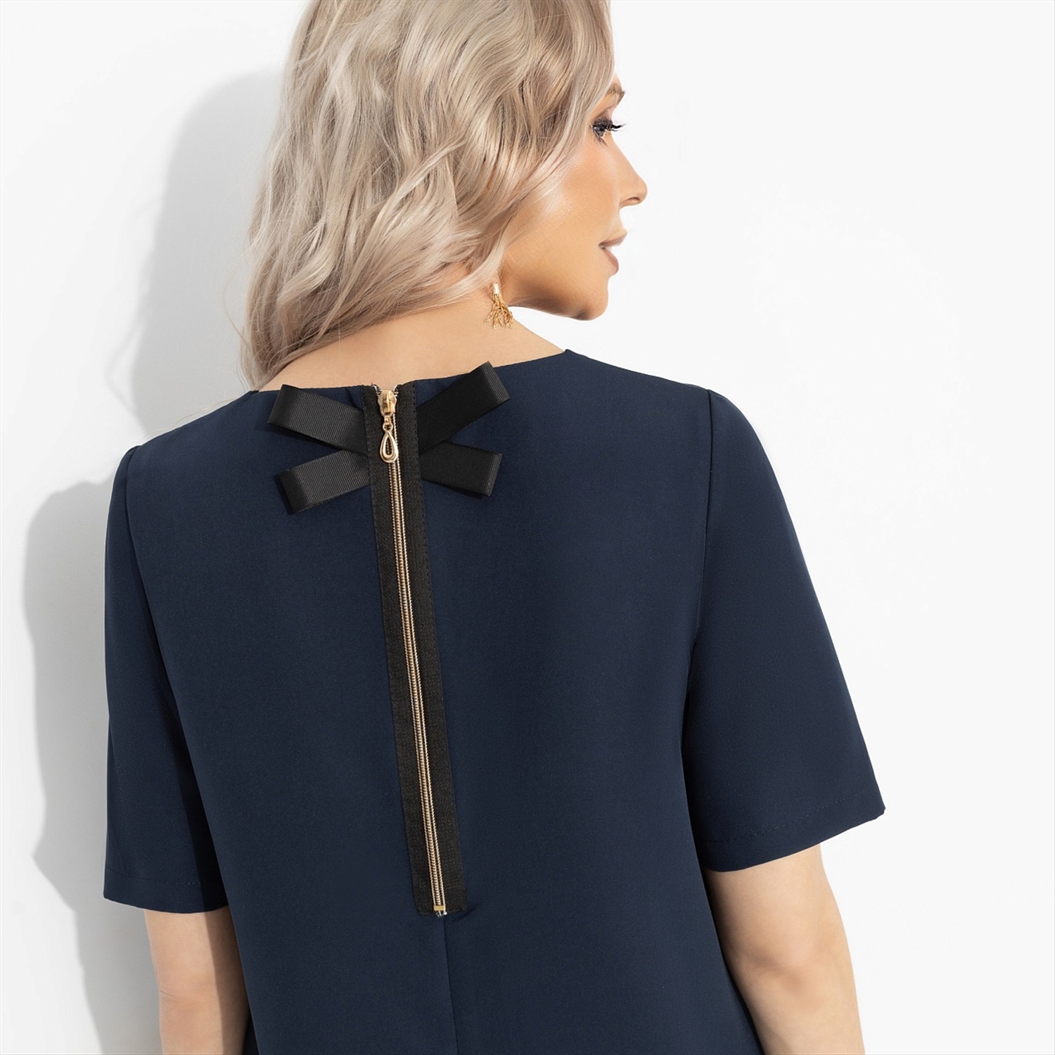 Состав: «Барби» (95% п/э, 5% эластан) Плотность ткани: Средняя Тип ткани: Текстиль Вид застежки: Молния Декоративные элементы: Банты Карманы: В боковом шве Основной цвет ткани: Синий Отрезная талия: Нет Подклад: Нет Резинка по талии: Нет Рисунок/раппорт: Нет, все изделия идентичны Сезон: Круглогодичный Силуэт: Прямой Стиль: Повседневный Параметры модели на фото: