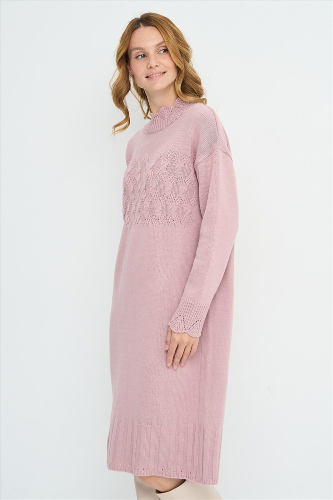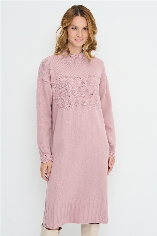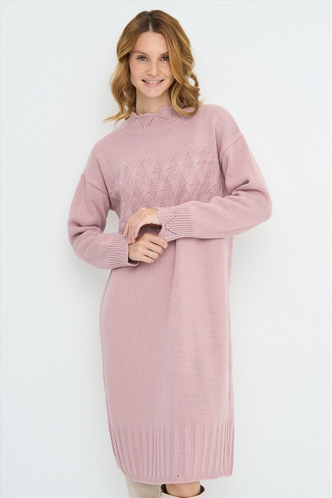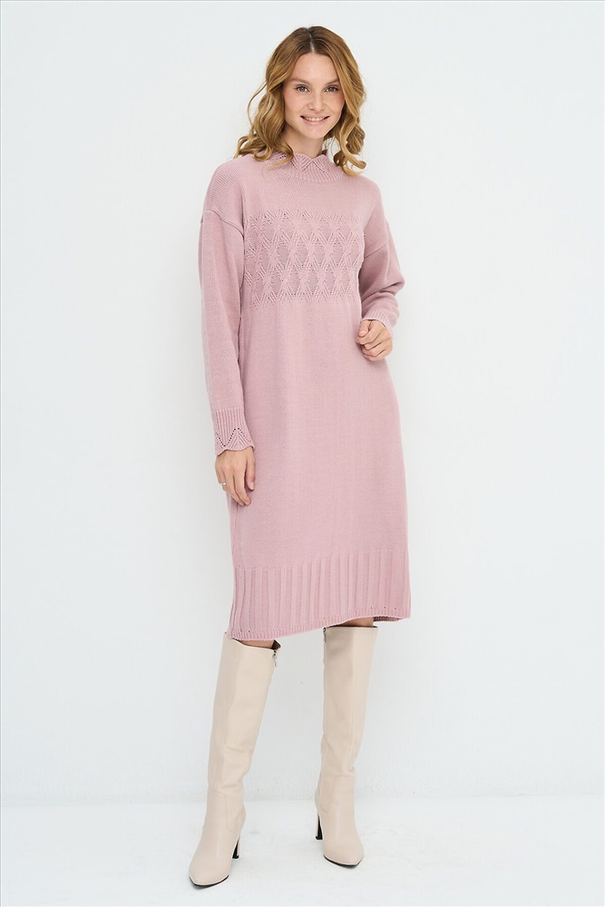 Страна производства: Россия Вязаное платье с фигурным воротником-стойкой.