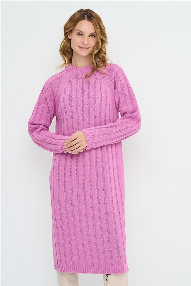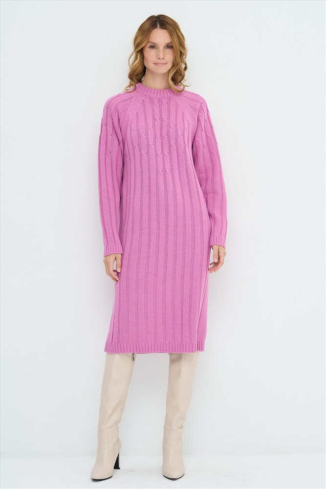 Страна производства: Россия Вязаное платье с круглоым вырезом горловины.