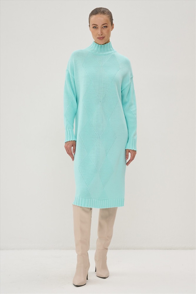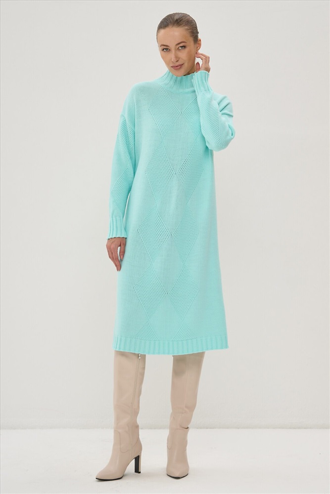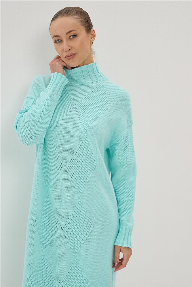 Страна производства: Россия Вязаное платье с высоким воротом.