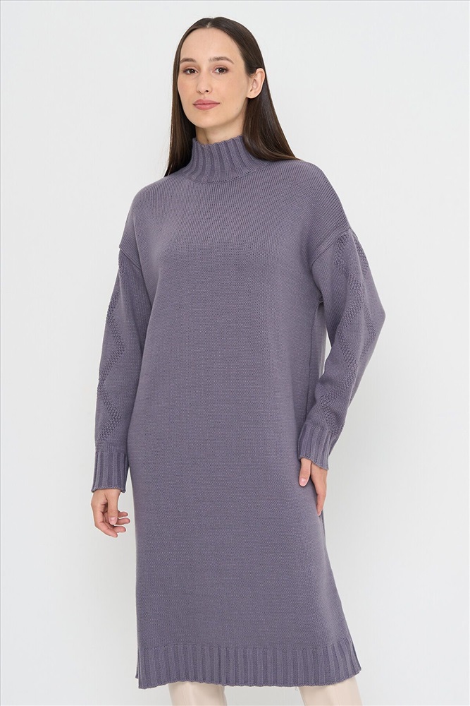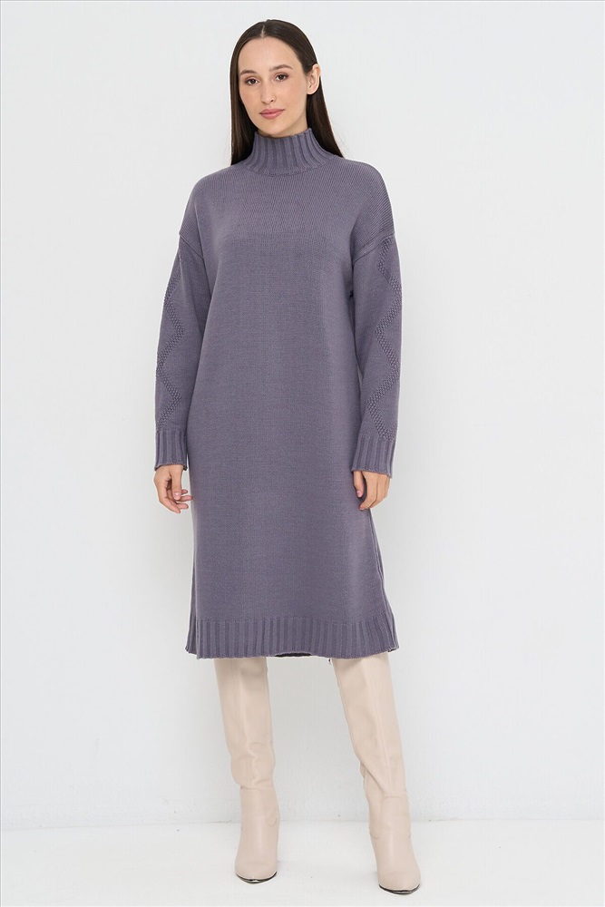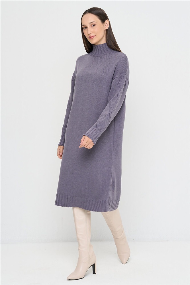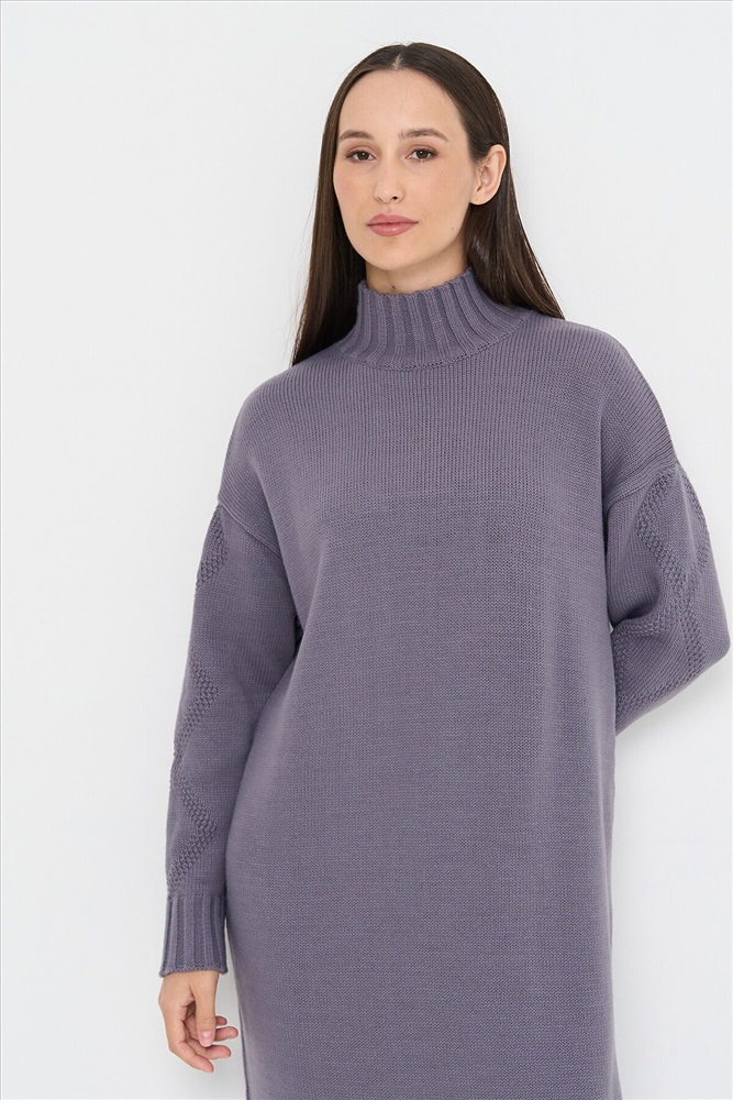 Страна производства: Россия Вязаное платье с воротником-стойкой.