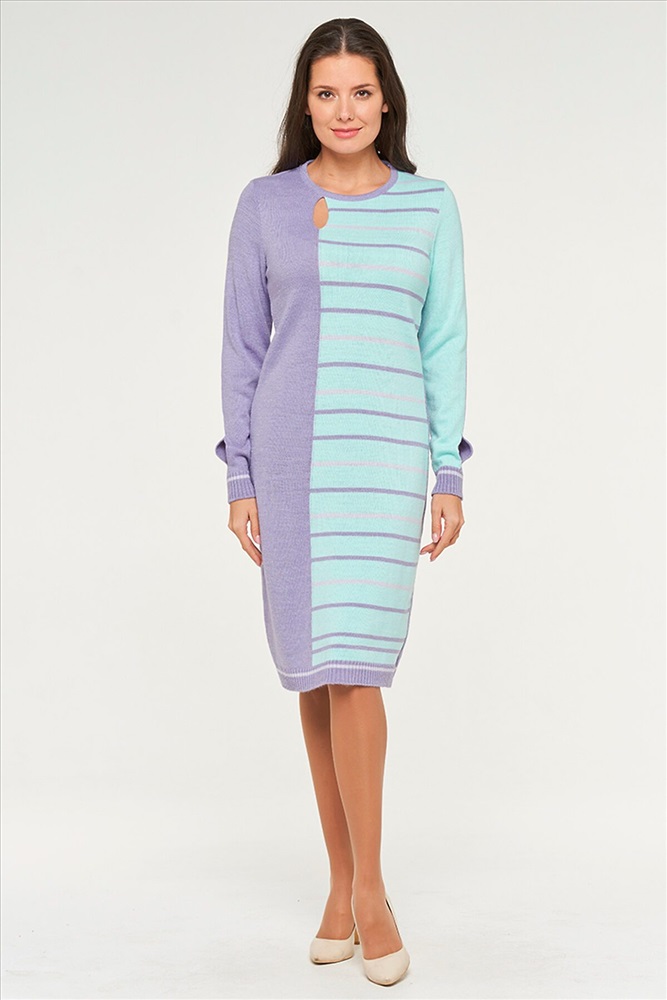 Трикотажное платье прямого силуэта с в полоску. Отличная базовая вещь для ежедневного гардероба. Прекрасно сочетается с модельной обувью или обувью в стиле кэжуал.