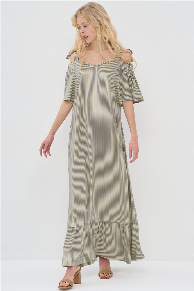 ID товара: 896229 Состав: Вискоза - 100% Сезон: Весна/Лето Длина: 124 Фасон: Свободный крой Рукав: короткие Вырез горловины: Сердечко Рисунок: Полоски Основная ткань: Вискоза Стиль: Повседневный Страна бренда: Россия Страна производства: Россия Женское платье свободного силуэта. Комментарии к товару