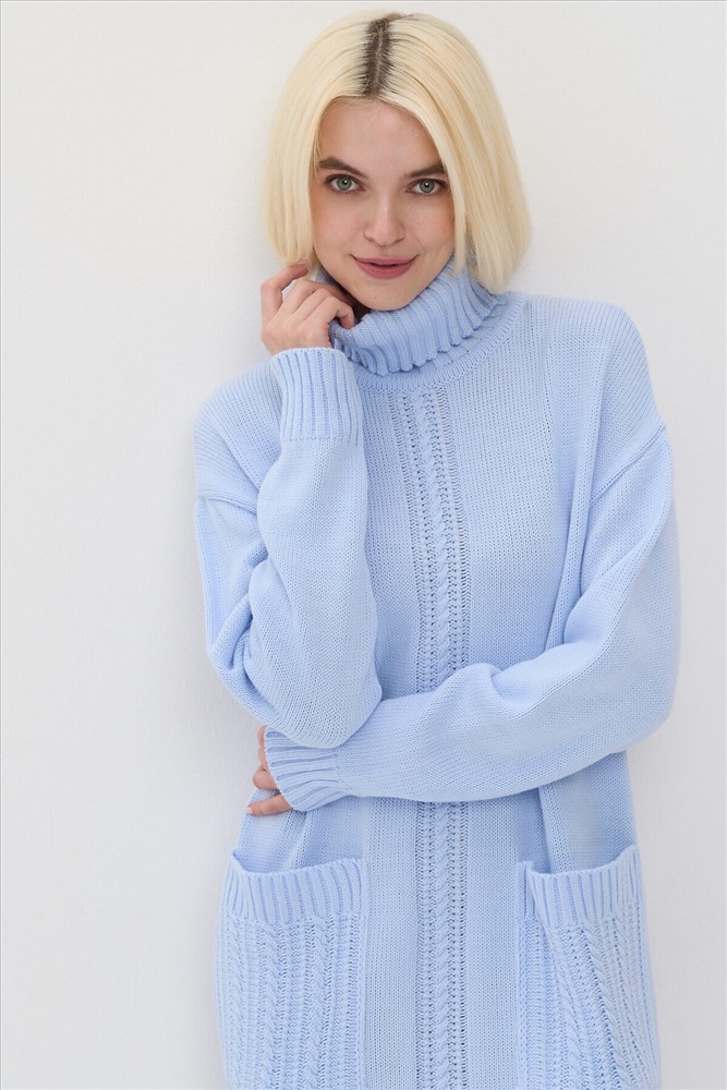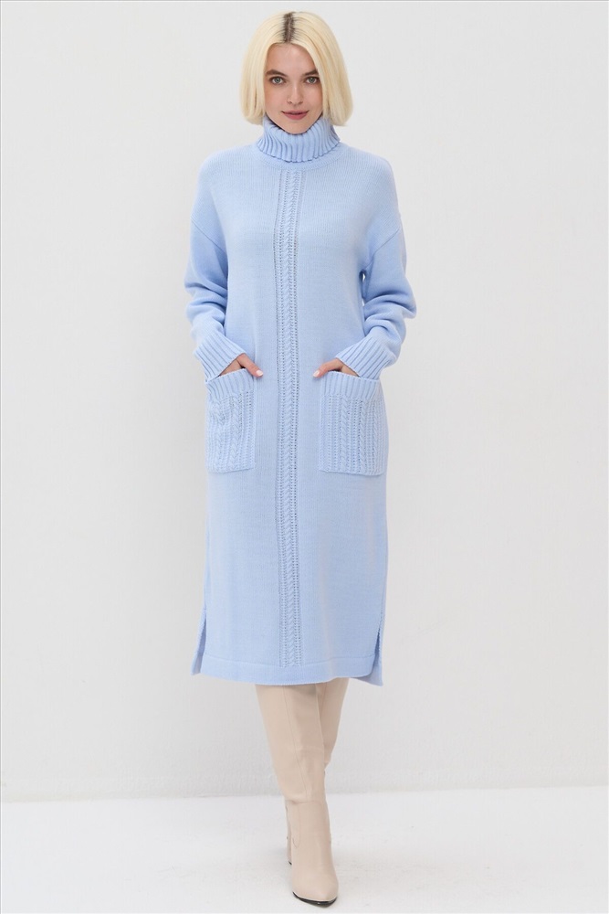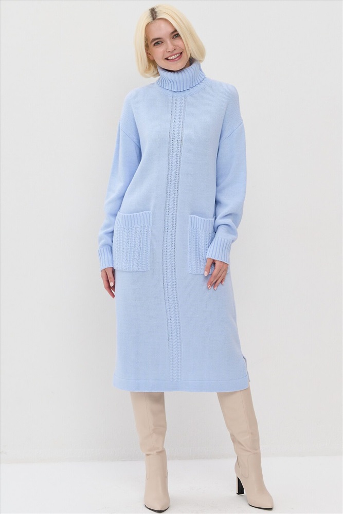 Страна производства: Россия Женское трикотажное платье с накладными карманами.