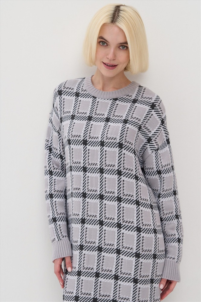 ID товара: 916215 Состав: ПАН 70%, Шерсть 30% Сезон: Осень/Зима Длина: 100 Фасон: Свободный крой Рукав: длинные Вырез горловины: Округлый Рисунок: Клетка Основная ткань: ПАН Стиль: Повседневный Страна бренда: Россия Страна производства: Россия Женское трикотажное платье свободного кроя. Комментарии к товару