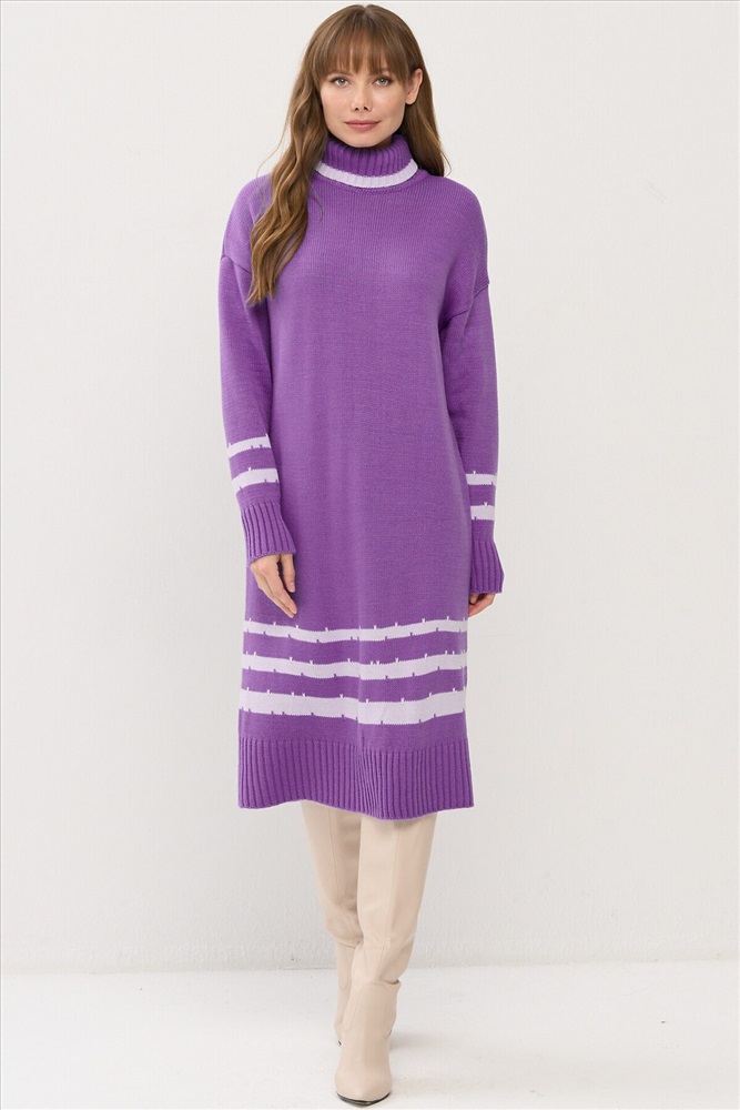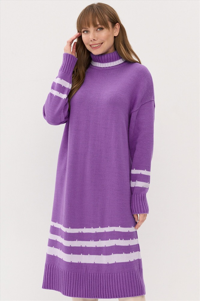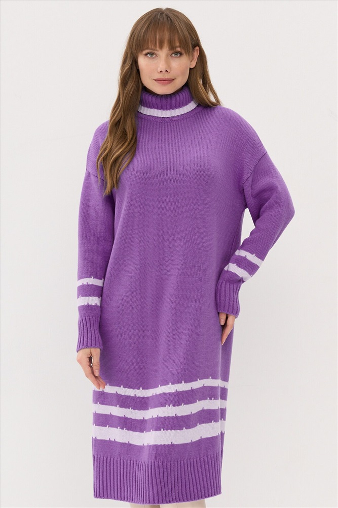 ID товара: 943757 Состав: ПАН 70%, Шерсть 30% Сезон: Осень/Зима Длина: 100 Фасон: Прямой Рукав: длинные Вырез горловины: Воротник-стойка Основная ткань: ПАН Стиль: Повседневный Страна бренда: Россия Страна производства: Россия Женское трикотажное платье. Комментарии к товару