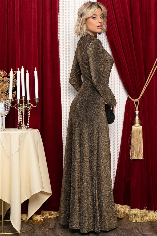 Создано для тех, кто стремится стать звездой любого праздника. Это платье изготовлено из трикотажа с золотыми нитями люрекса. Оно добавляет образу элегантности и роскоши.