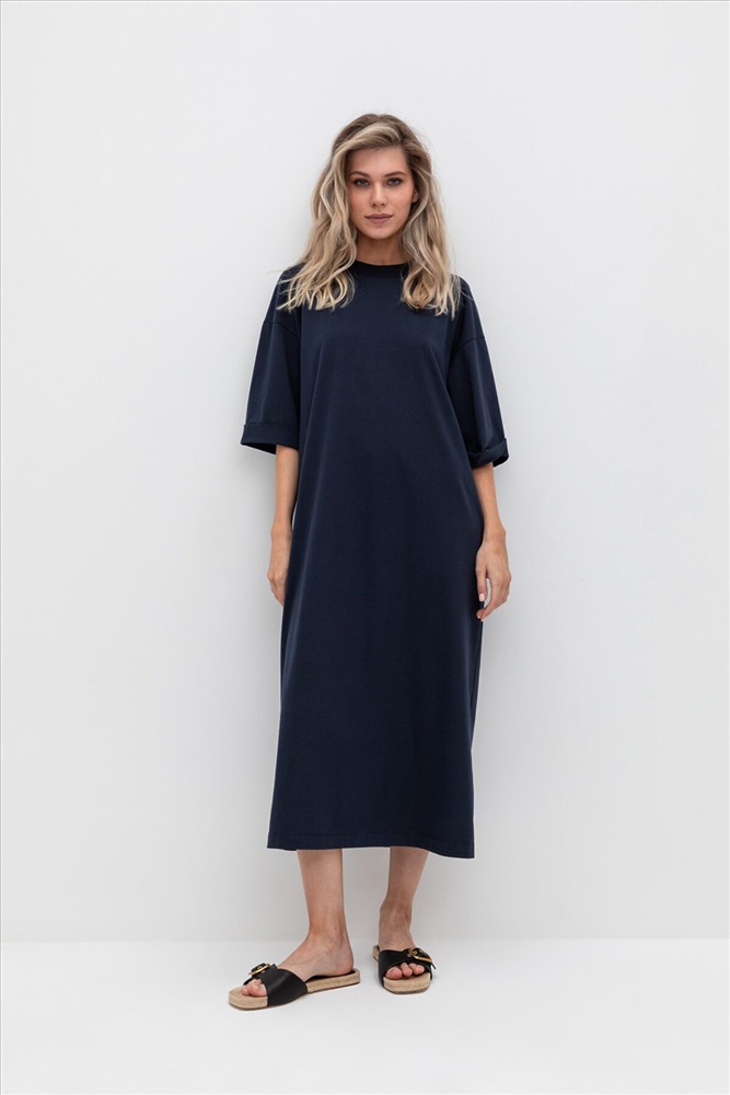 ID товара: 1028817 Состав: 100% Хлопок Сезон: Весна/Лето Длина: Миди Фасон: Свободный крой Рукав: До локтя Вырез горловины: Круглый Основная ткань: Хлопок Стиль: Повседневный Страна бренда: Россия Страна производства: Россия Удлиненное трикотажное платье из длинноволокнистого гребенного хлопка. Спущенное плечо придает изделию свободный силуэт. Все трикотажные полотна производятся в соответствии с нормами Швейцарского сертификата ЭкоТекс. Сделано в России - 100% хлопок - гипоаллергенные красители - прямой крой Комментарии к товару