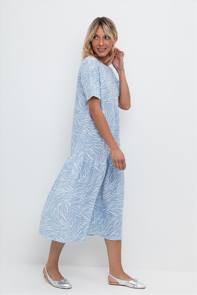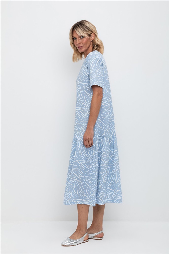 ID товара: 1029361 Состав: 100% Хлопок Сезон: Весна/Лето Длина: Миди Фасон: Свободный крой Рукав: Короткий Вырез горловины: Круглый Рисунок: Фантазийный Основная ткань: Хлопок Стиль: Повседневный Страна бренда: Россия Страна производства: Россия Трикотажное платье с воланом из набивного пике из длинноволокнистого гребенного хлопка. Спущенное плечо придает изделию свободный силуэт. Все трикотажные полотна производятся в соответствии с нормами Швейцарского сертификата ЭкоТекс. Сделано в России - 100% хлопок - гипоаллергенные красители Комментарии к товару