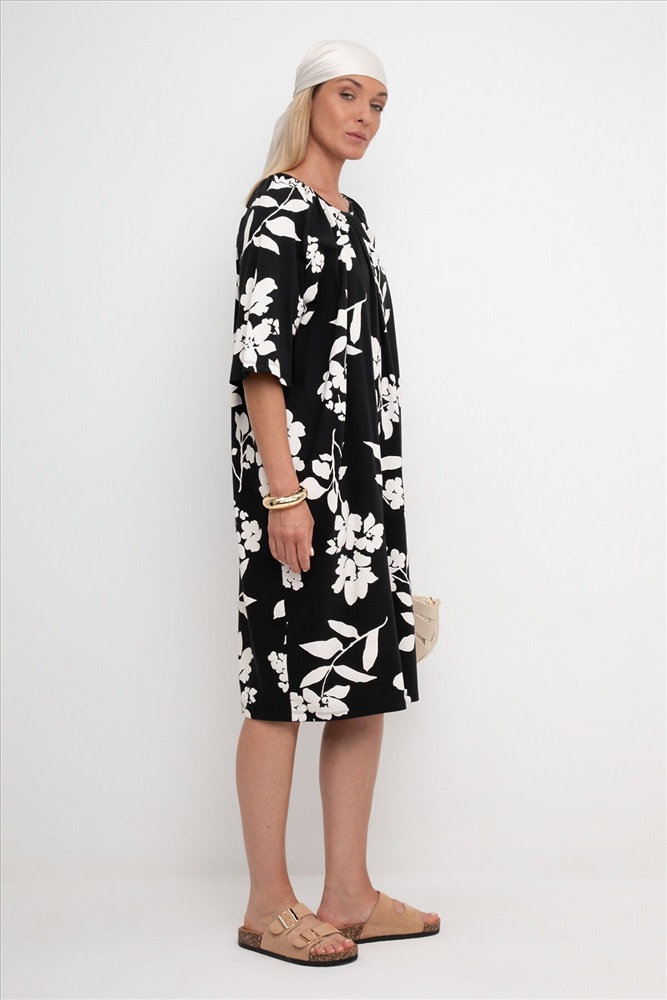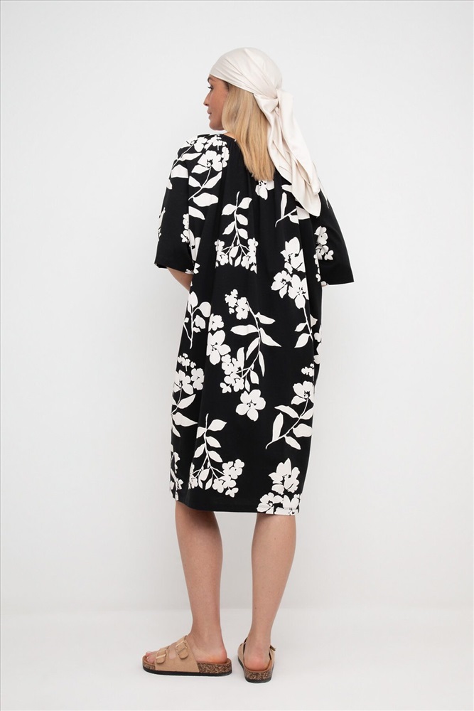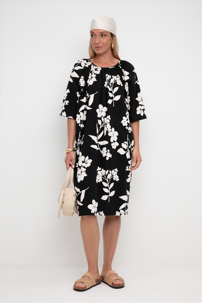 ID товара: 1029373 Состав: 100% Хлопок Сезон: Весна/Лето Длина: Миди Фасон: Свободный крой Рукав: До локтя Вырез горловины: Круглый Рисунок: растительный, цветочный Основная ткань: Хлопок Стиль: Повседневный Страна бренда: Россия Страна производства: Россия Легкое свободное платье с круглым вырезом на сборке, короткими рукавами из набивного трикотажа супрем. Все трикотажные полотна производятся в соответствии с нормами Швейцарского сертификата ЭкоТекс. Сделано в России - 100% хлопок - гипоаллергенные красители Комментарии к товару