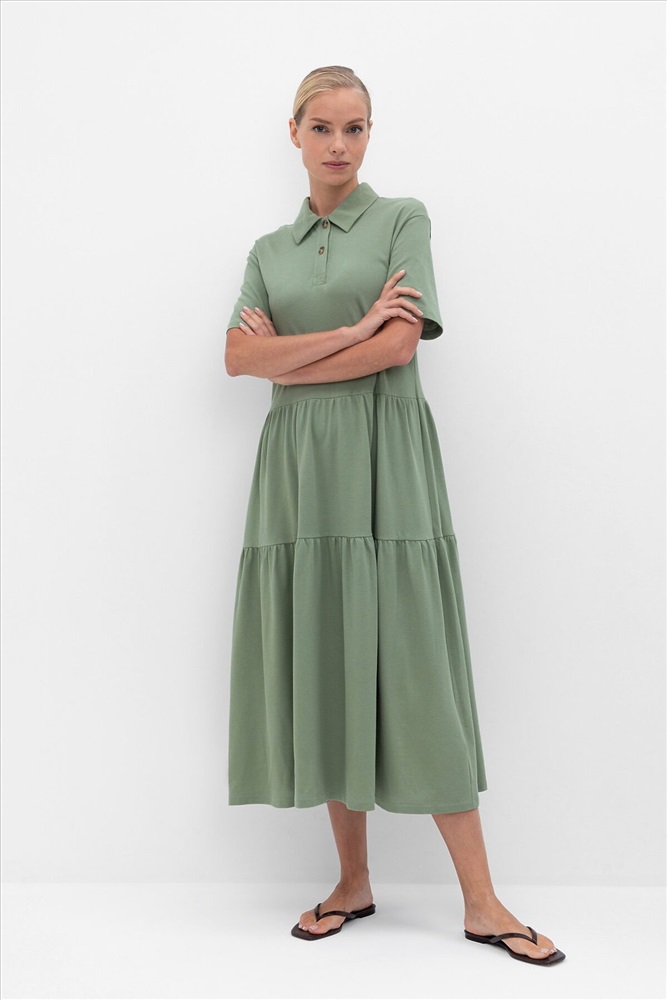 ID товара: 972913 Состав: 100% Хлопок Сезон: Весна/Лето Длина: Ниже колена Фасон: Полуприталенный Рукав: Короткий Вид застежки: Пуговицы Вырез горловины: Отложной воротник Основная ткань: Хлопок Стиль: Повседневный Страна бренда: Россия Страна производства: Россия Женское платье из однотонного пике с воротником поло, короткими рукавами и широкими оборками . Все трикотажные полотна производятся в соответствии с нормами Швейцарского сертификата ЭкоТекс. Сделано в России - 100% хлопок - гипоаллергенные красители Комментарии к товару