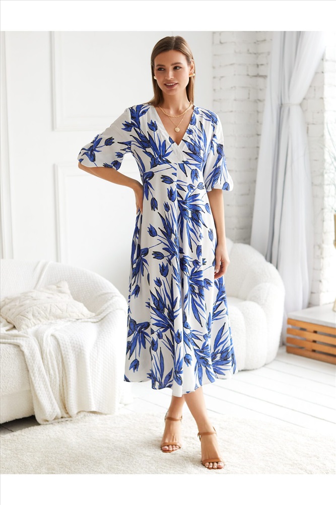 ID товара: 1118979 Состав: 55% Вискоза, 45% Лиоцелл (Вис) Сезон: Весна/Лето Длина: Миди Фасон: Полуприлегающий Рукав: короткие Вырез горловины: V-образный Рисунок: цветочный Декоративные элементы: Принт Основная ткань: Вискоза Стиль: Повседневный Страна бренда: Россия Страна производства: Китай Модель А-силуэта с завышенной талией. Ткань с характерным мягким блеском хорошо драпируется и струится по телу. В жаркое время года приятно охлаждает кожу. Комментарии к товару
