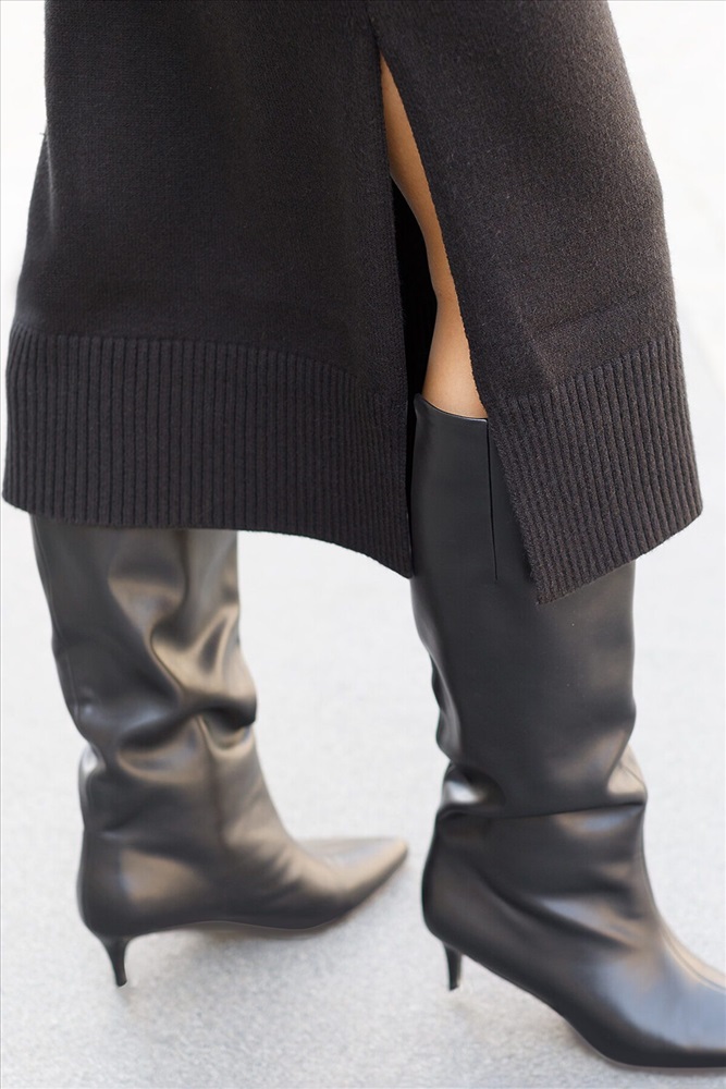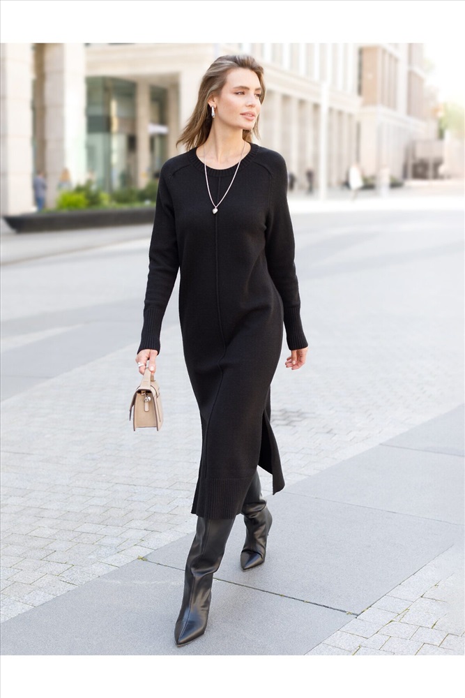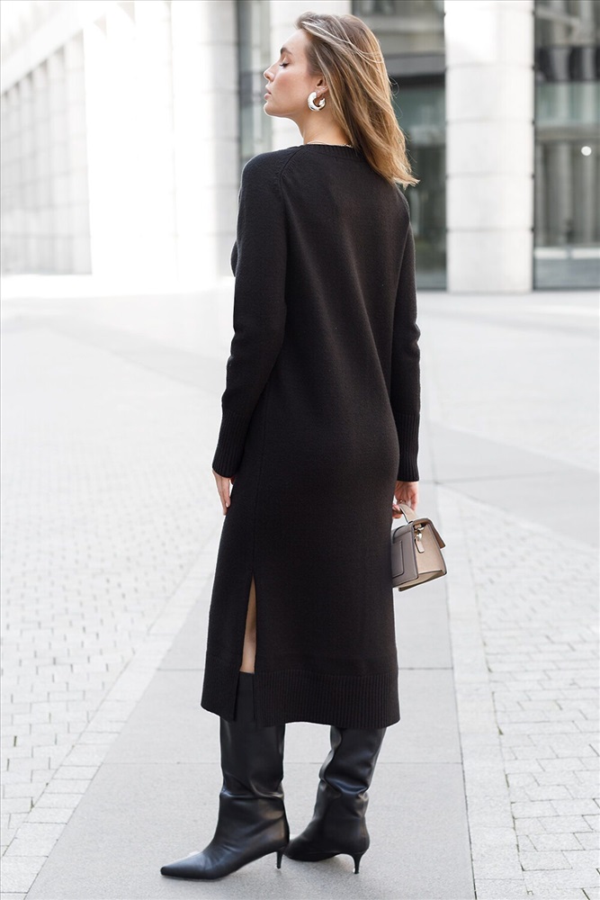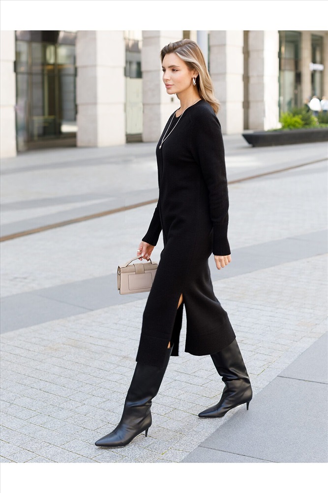 ID товара: 1197250 Состав: 52% ПАН (акрил), 33% Полиэстер, 8% Полиуретан, 7% Кашемир Сезон: Осень/Зима Длина: Миди Фасон: Прямое Рукав: Длинные Вырез горловины: Воротник-стойка Декоративные элементы: Разрезы Основная ткань: Полиуретан Стиль: Базовый Страна бренда: Россия Страна производства: Китай Платье длины миди выполнено из мягкой меланжевой пряжи с кашемиром. Модель прямого силуэта дополнена одиночным высоким боковым разрезом. Вязаный кант вертикально проходящий по всему изделию, визуально стройнит и вытягивает силуэт. При желании можно подчеркнуть линию талии, используя контрастный пояс. Комментарии к товару