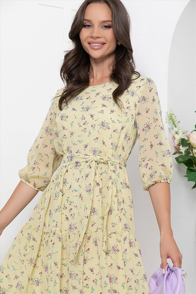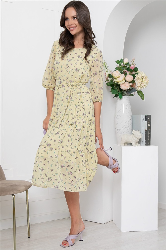 ID товара: 897679 Состав: 80% Полиэстер, 20% Вискоза Сезон: Весна/Лето Длина: Ниже колена Фасон: Полуприталенный Рукав: 3/4 Вырез горловины: Лодочка Рисунок: цветочный Декоративные элементы: Пояс Основная ткань: Полиэстер Стиль: Повседневный Страна бренда: Россия Страна производства: Россия Артикул: П6700. Ткань: шифон. Состав: 80% п/э, 20% вискоза. Цвет: желтый. Принт: флористический. Вид застежки: без застежки. Силуэт: А-силуэт. Подкладка: есть. Карманы: отсутствуют. Тип горловины: округлый. Длина изделия по спинке: 44-50/ 112 см, 52-54/ 114 см. Рост модели: 175 см. Платье из шифона с цветочным принтом украсит ваш нарядный образ и создаст прекрасное настроение. Нежная и струящаяся фактура ткани выгодно подчеркнут достоинства фигуры, а пояс из основной ткани сделает акцент на талии. Рукав втачной, три четверти, но низу на резинке. Талия отрезная. Уход за изделием: бережная стирка до 30 градусов; нельзя отбеливать; деликатный отжим; гладить при t не более 110 С; гладить с изнанки. *Допуск отклонения длины при массовом производстве 1-3 см является нормой. Комментарии к товару