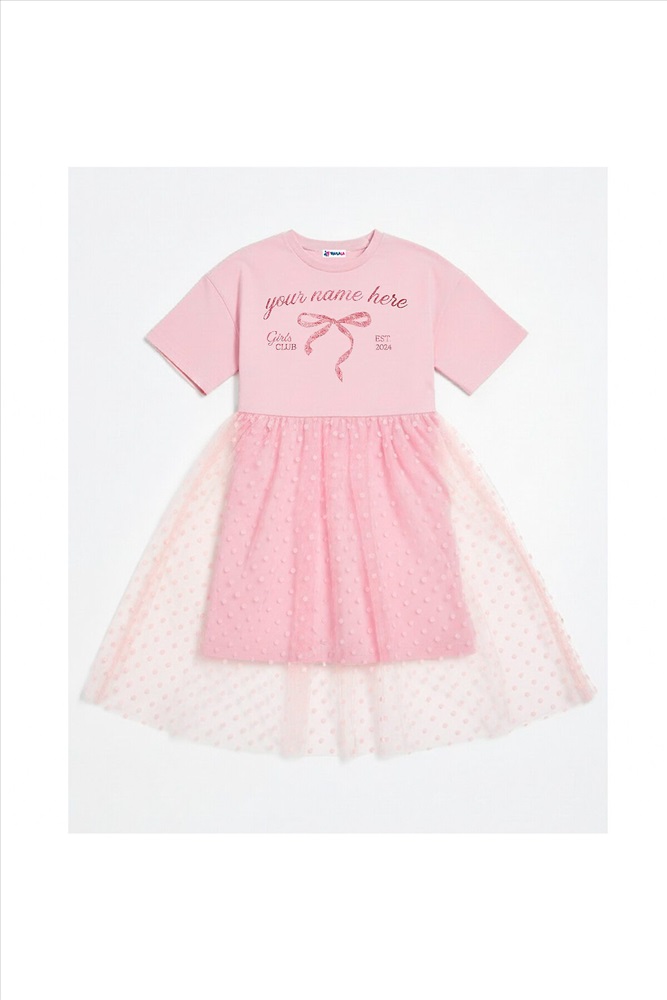 ID товара: 1223090 Сезон: Демисезон Длина: Средняя Фасон: Расклешенное Рукав: короткие Вырез горловины: Округлый Рисунок: Надпись Декоративные элементы: Принт Основная ткань: Хлопок Стиль: Нарядный Страна бренда: Россия Страна производства: Россия Детское платье с нарядной верхней юбкой. Комментарии к товару