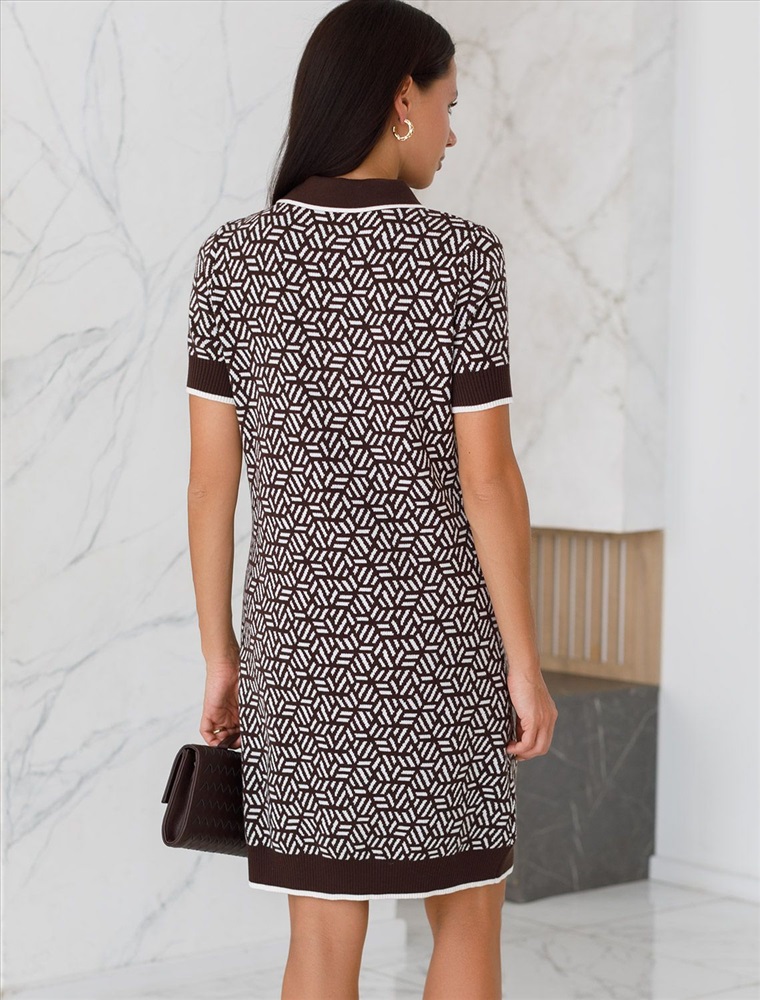 Платье жаккардовой вязки выполнено из нежной пряжи на основе вискозы с добавлением кашемира. Модель прямого силуэта с застежкой планкой как у поло. Фигурные золотистые пуговицы вносят изысканности и роскоши. Изделие приятно ощущается на теле и поддерживает комфортный микроклимат. Сочетается в комплекте total-look с жакетом D31.150